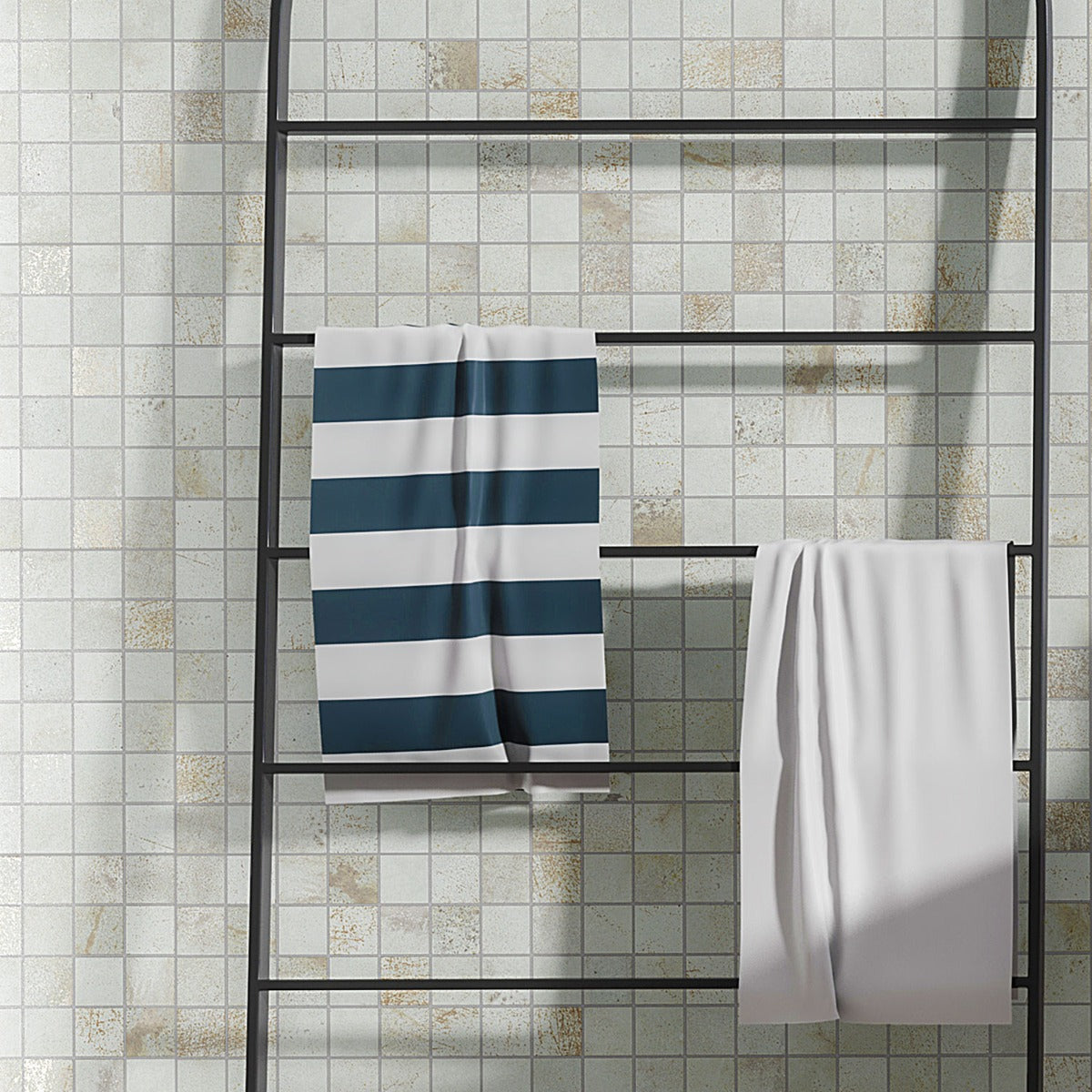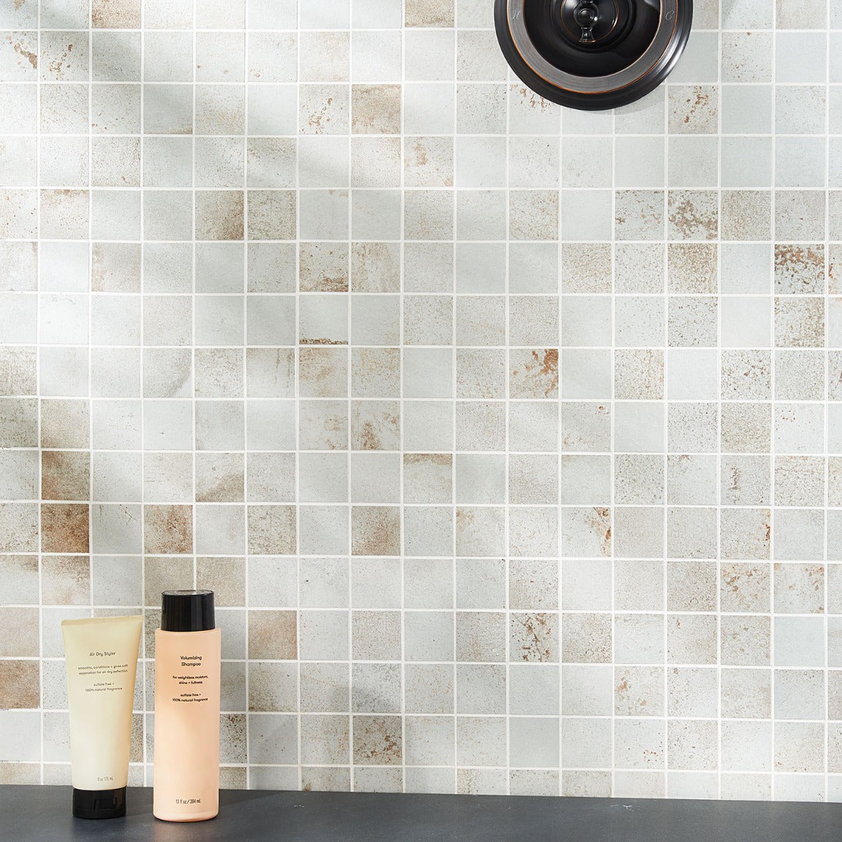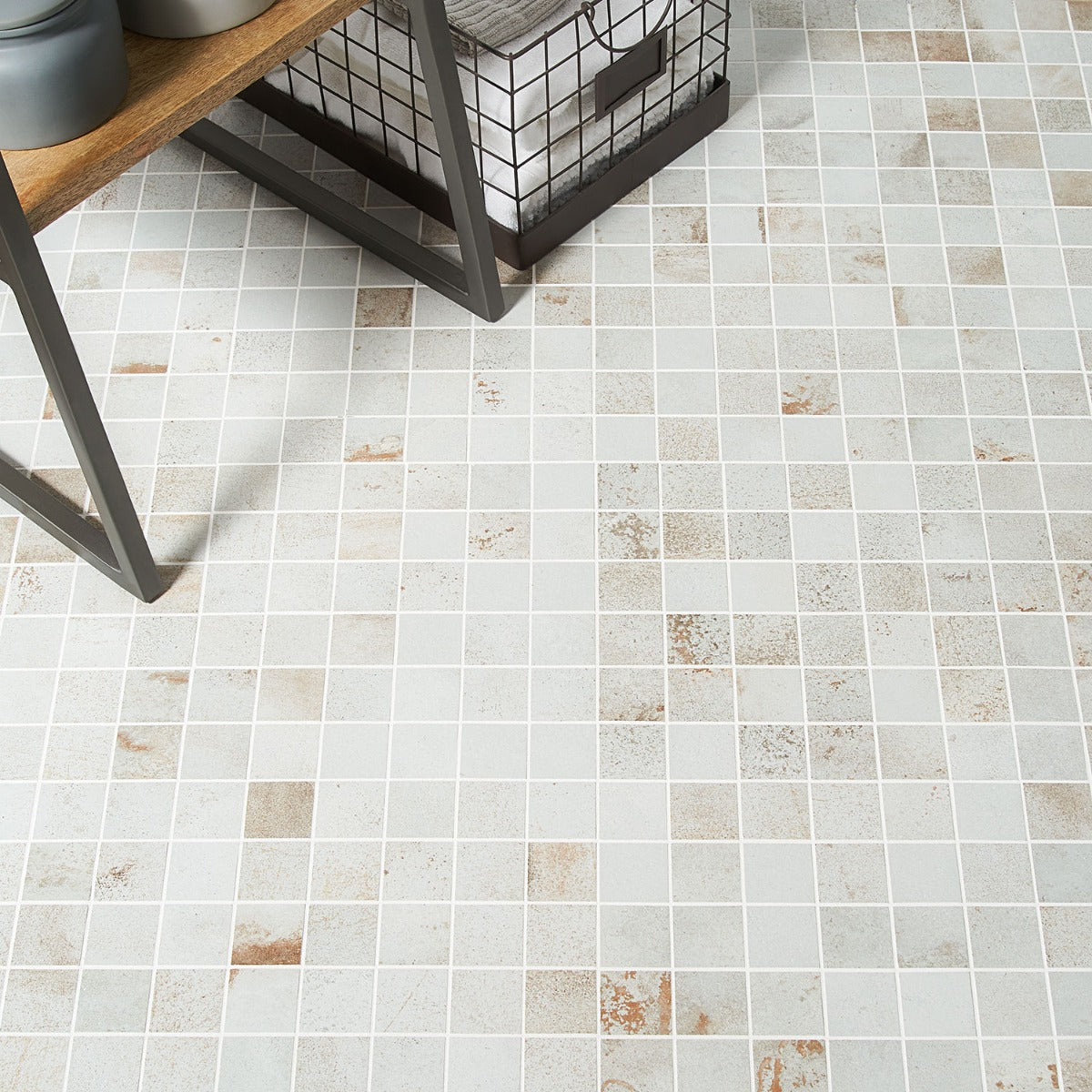 The Angela Harris Flatiron White 2x2 Matte Porcelain Mosaic redefines industrial-style design with its elegant patina effect and cement look. Featuring metallic edges, a natural matte finish, and advanced digital gloss effects, this tile is perfect for luxurious spaces.