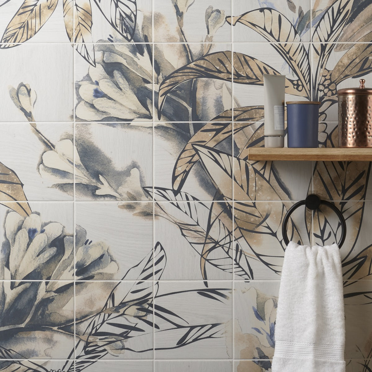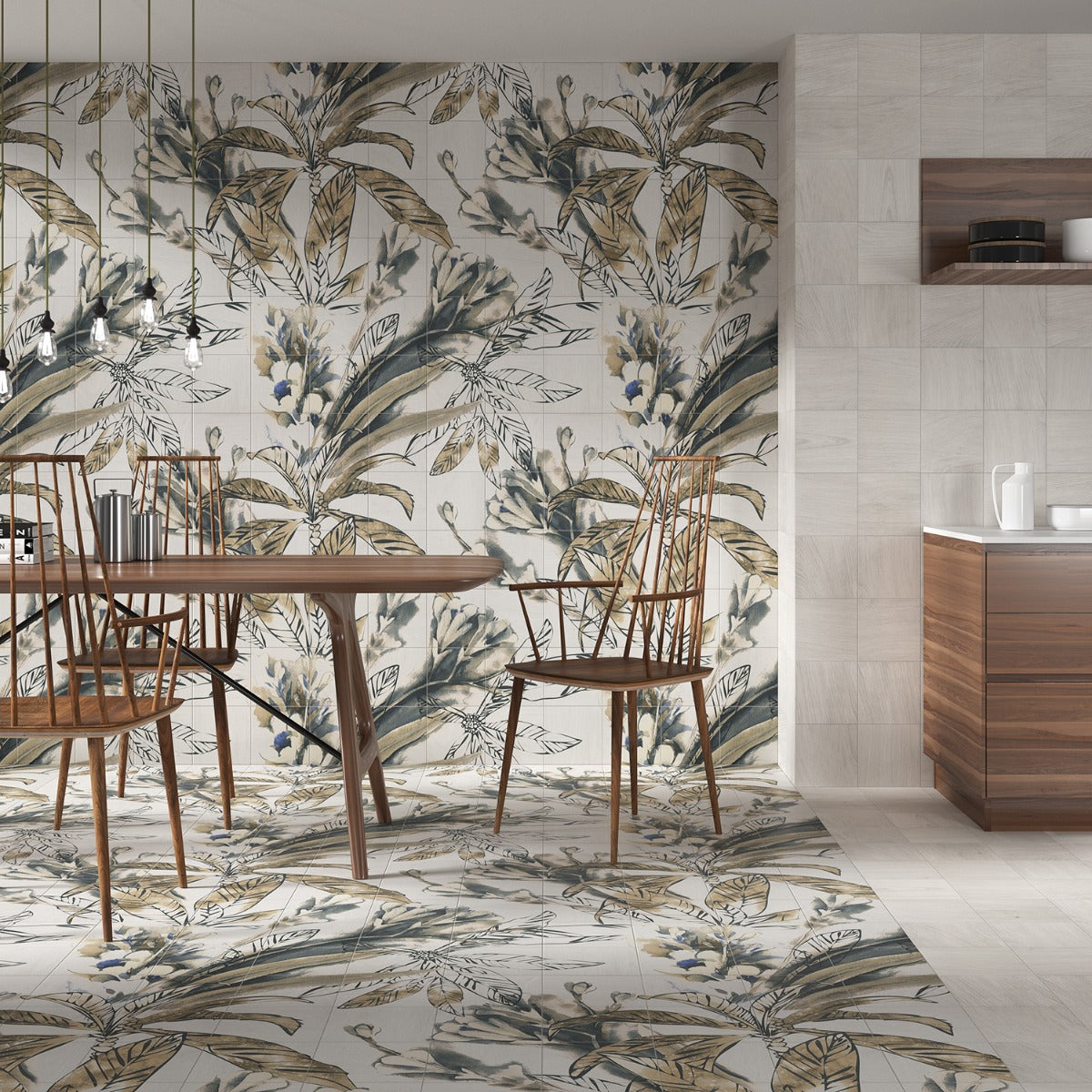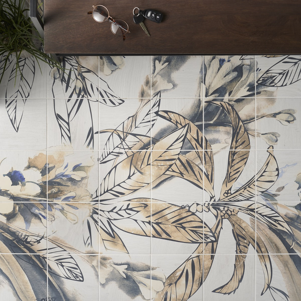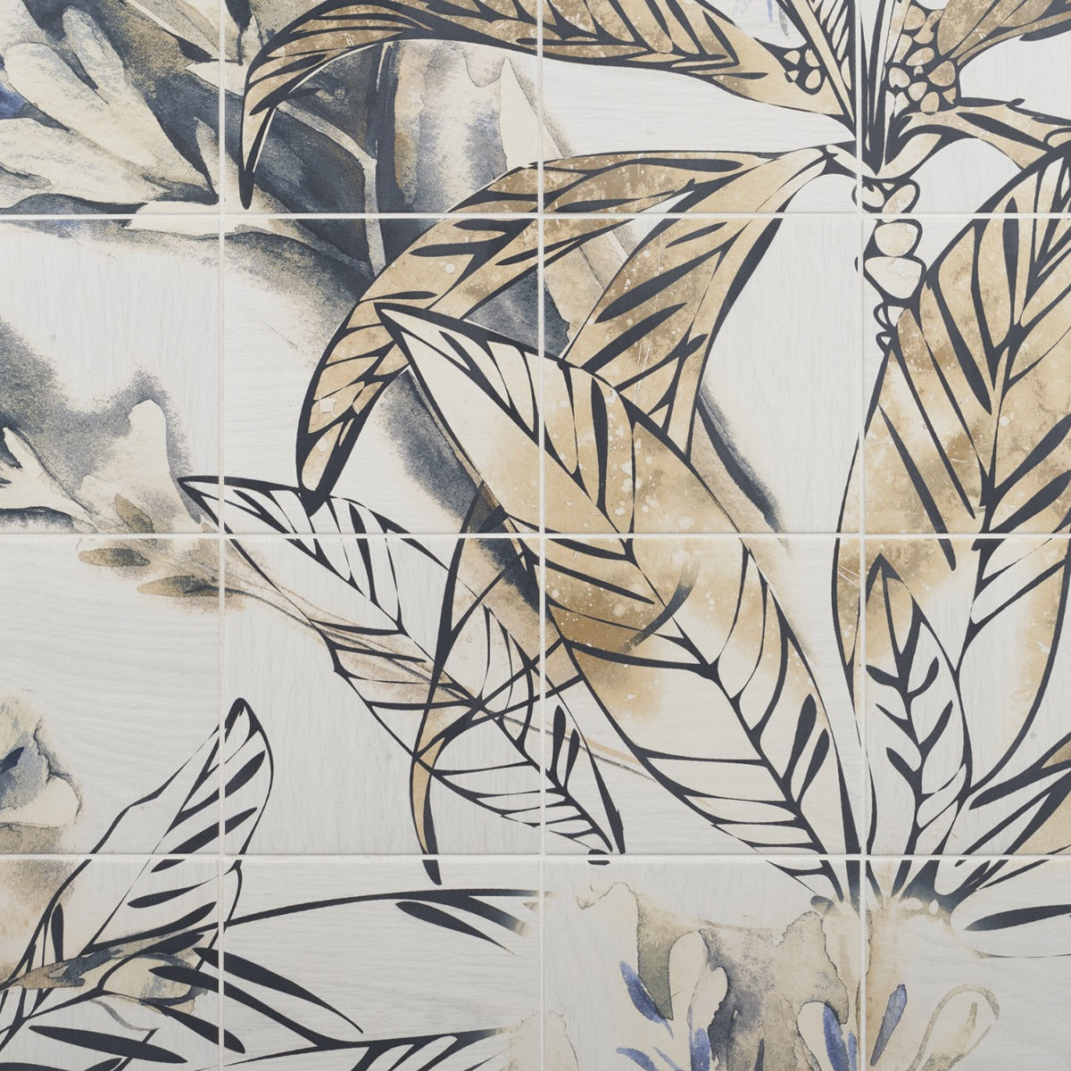 The Angela Harris Wilder Autumn Mural Tile features a stunning botanical design with a matte finish, perfect for creating captivating murals or unique patterns. Sustainably made in Spain, this tile combines art and nature for versatile interior design.