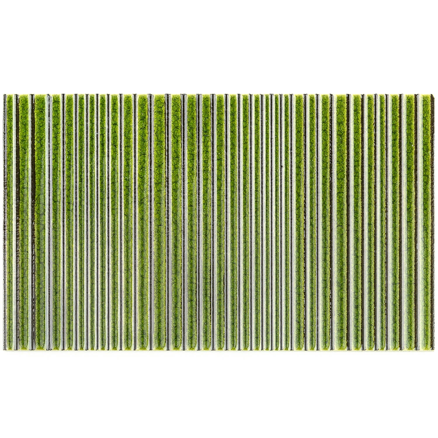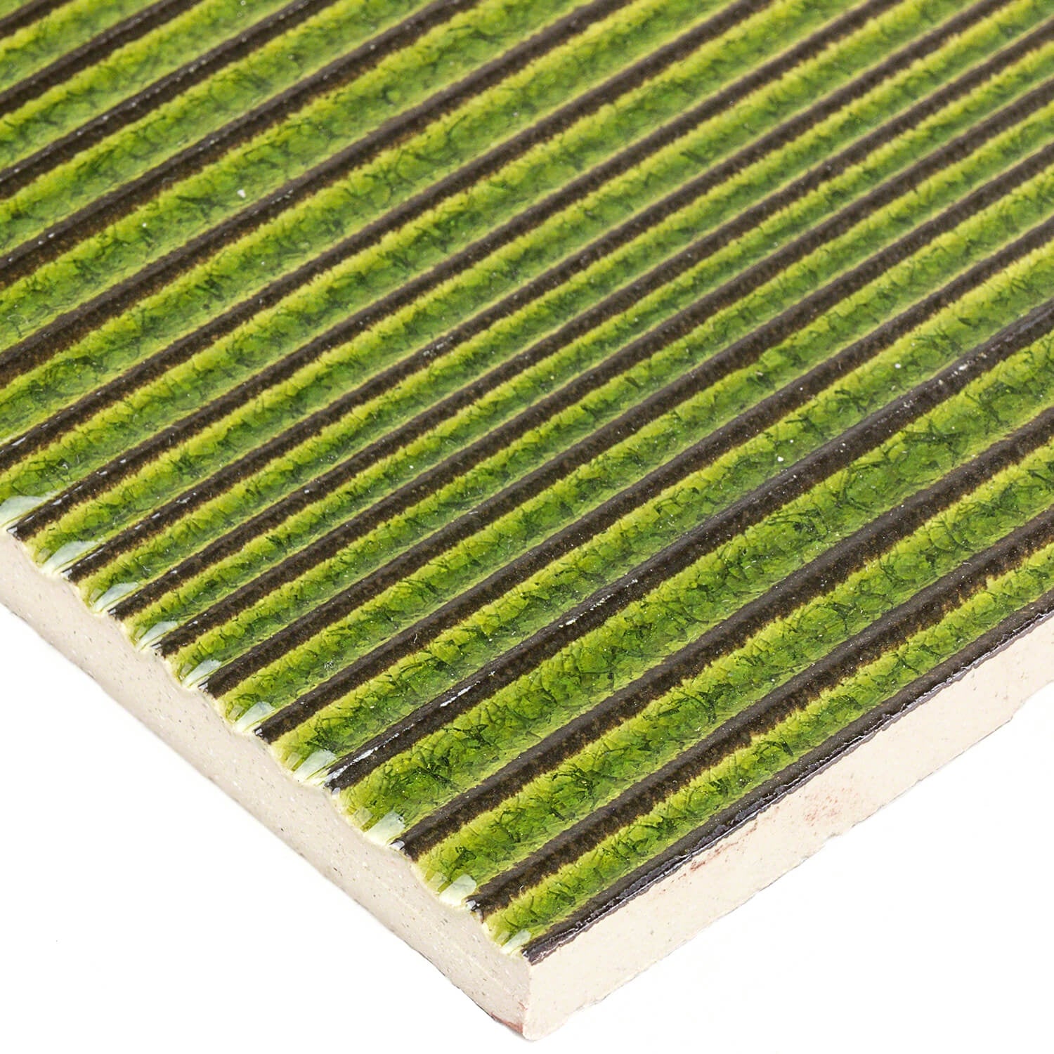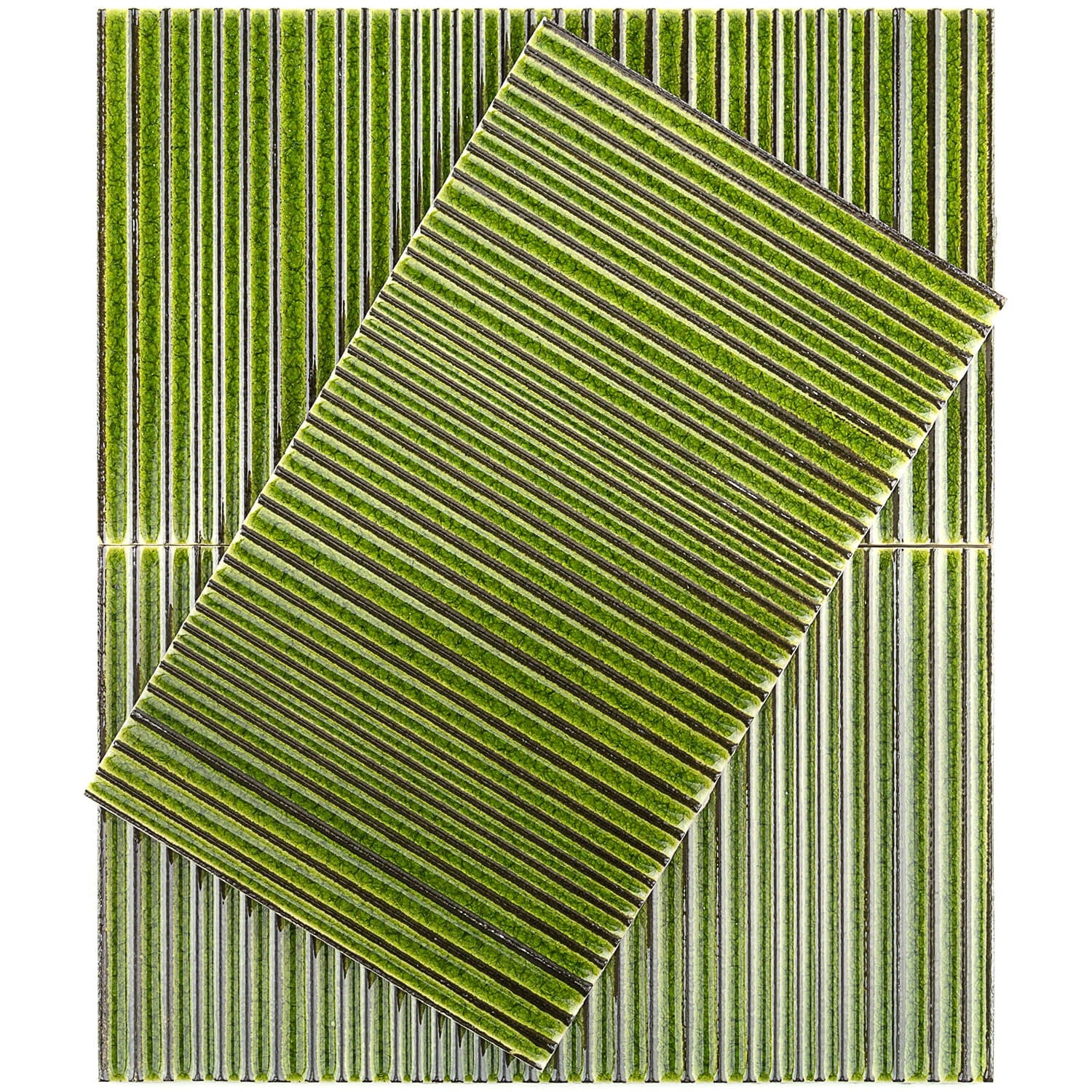 The Arden Forest Ridge Lime Green Tile offers a vibrant and unique design with its ribbed glossy surface. Perfect for both residential and commercial spaces, this tile adds depth and a touch of fun to any wall.