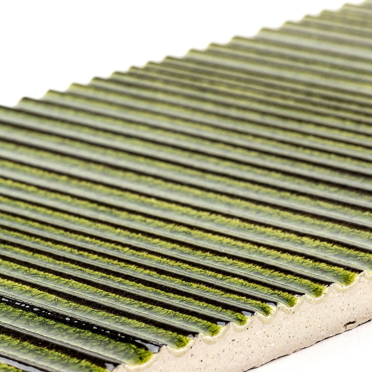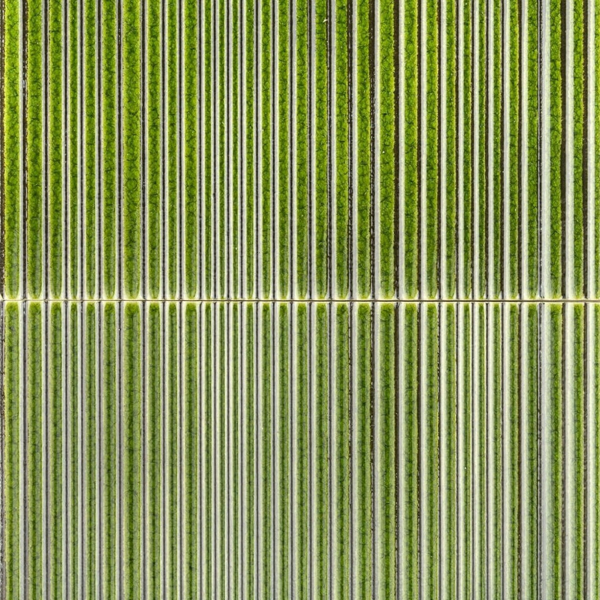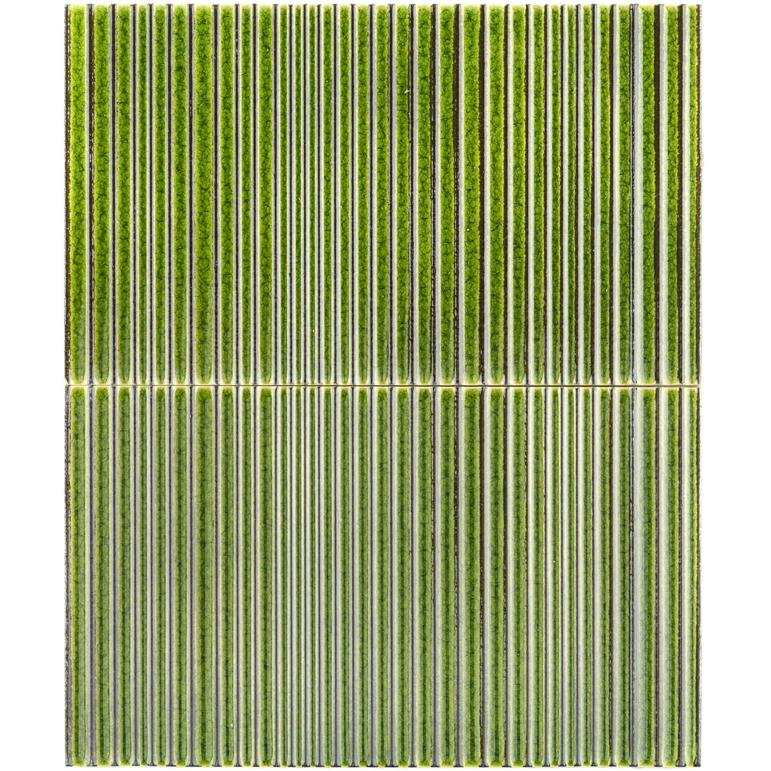 The Arden Forest Ridge Lime Green Tile offers a vibrant and unique design with its ribbed glossy surface. Perfect for both residential and commercial spaces, this tile adds depth and a touch of fun to any wall.