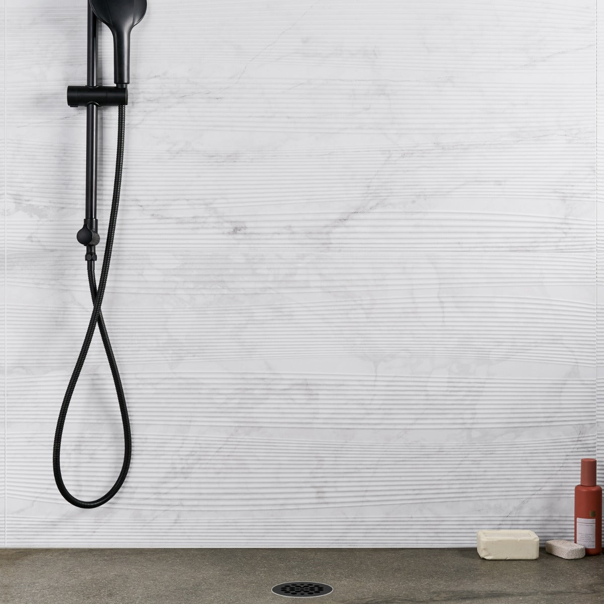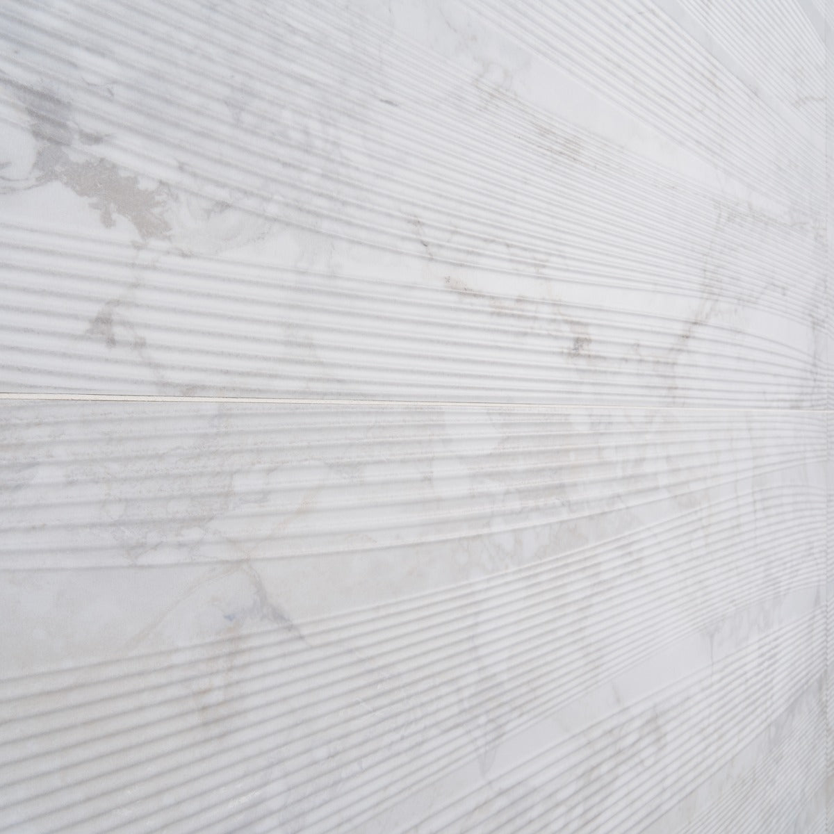 The Autograph Vibe Caldia Oro White 24x48 3D Textured Marble Look Matte Porcelain Tile combines the timeless beauty of marble with the durability of porcelain. Its 3D textured surface and matte finish create a sophisticated and modern aesthetic, perfect for enhancing any space.
