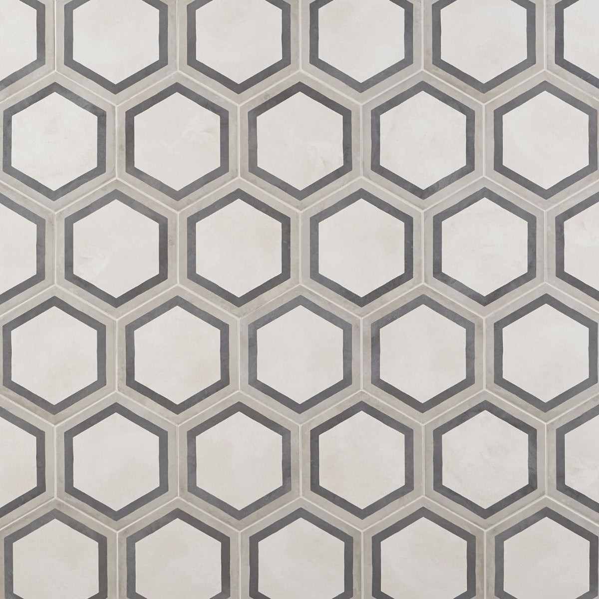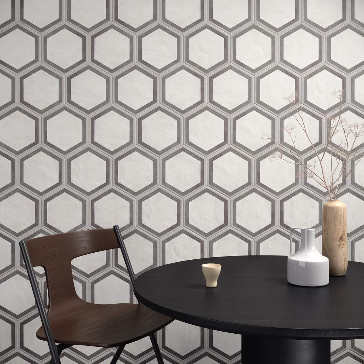 The Ava Deco Sabbia Charcoal Gray Hexagon Tile combines modern design with a handcrafted aesthetic. Its matte finish and bold pattern make it a versatile choice for contemporary interiors.