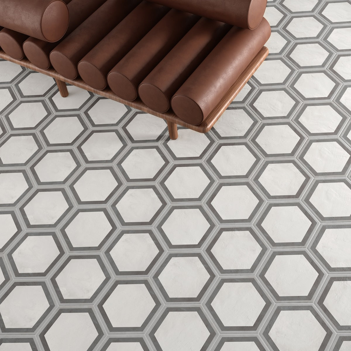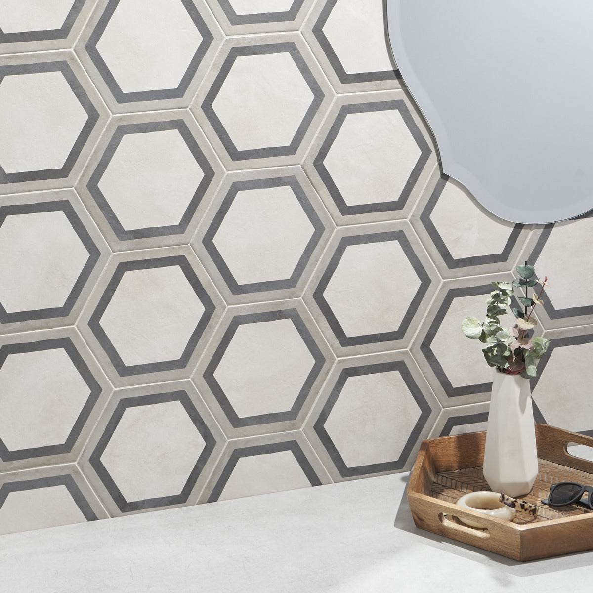 The Ava Deco Sabbia Charcoal Hex Tile is a masterpiece of modern design and traditional craftsmanship. Its bold hexagonal pattern and subtle tone variations create a dynamic visual impact, perfect for contemporary interiors. Style it as a statement wall or a chic flooring option to add depth and character to your space. This tile is not just a design choice; it's a testament to sophisticated living.