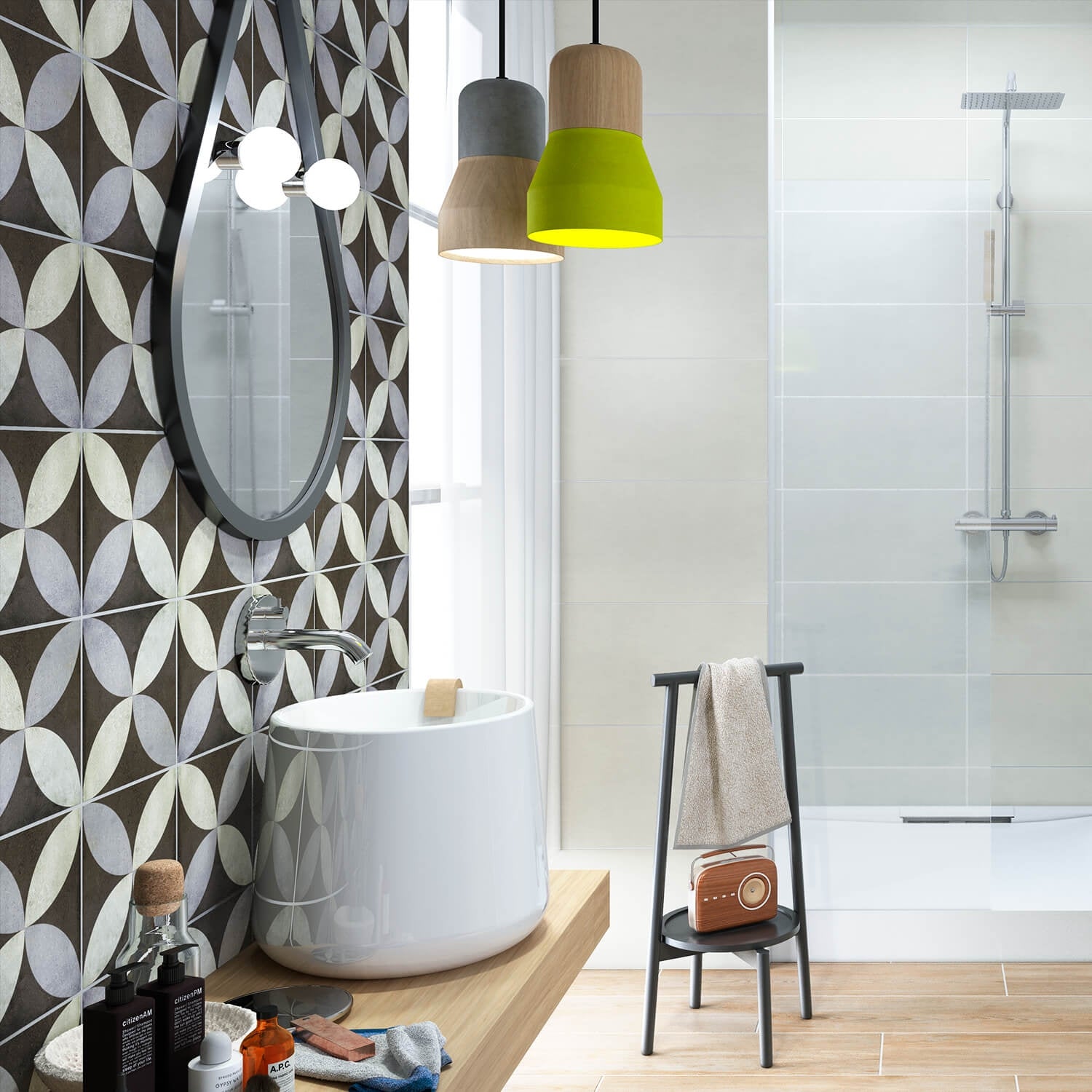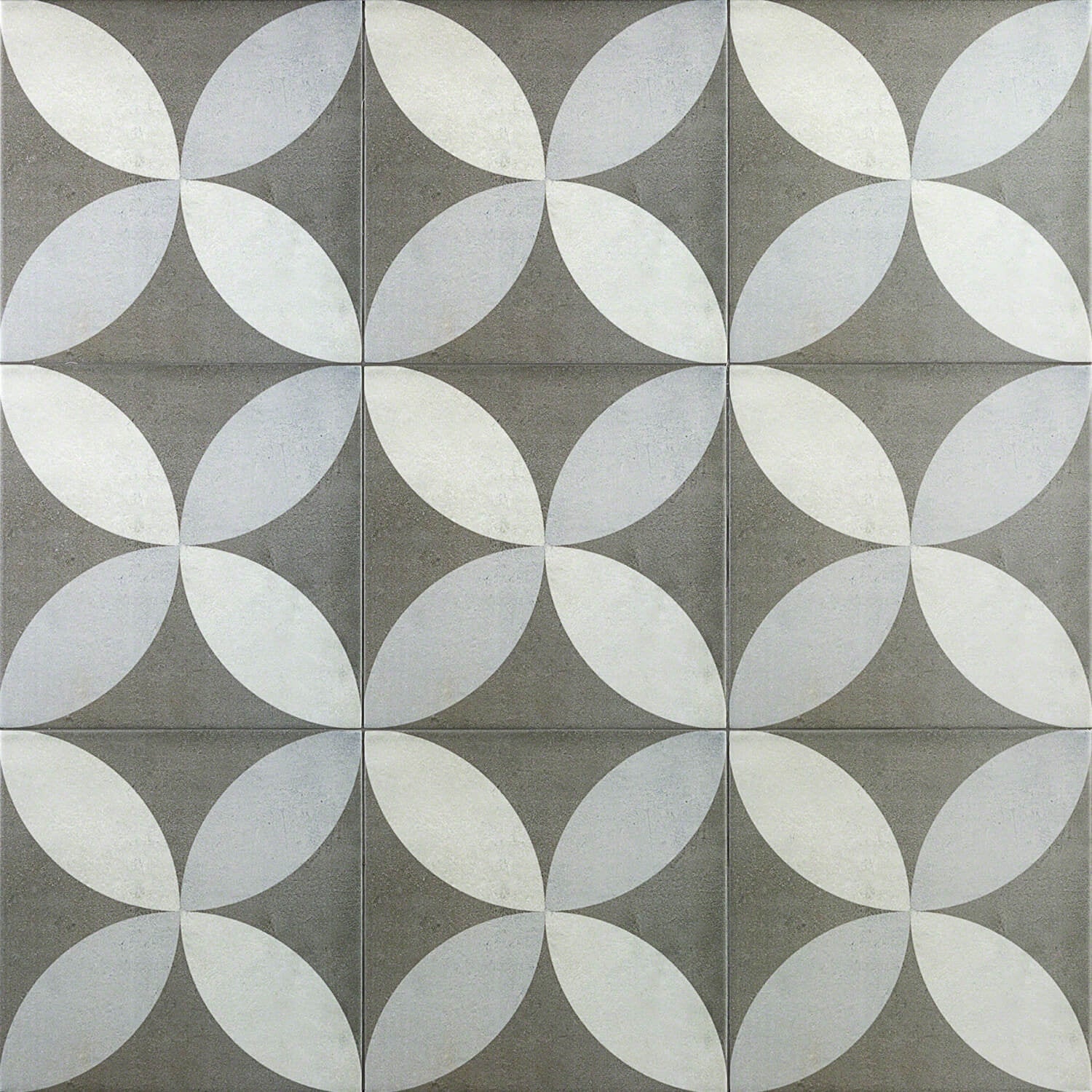 • Encaustic Inspired Design: Features a timeless pattern in dark gray, white, and light gray.