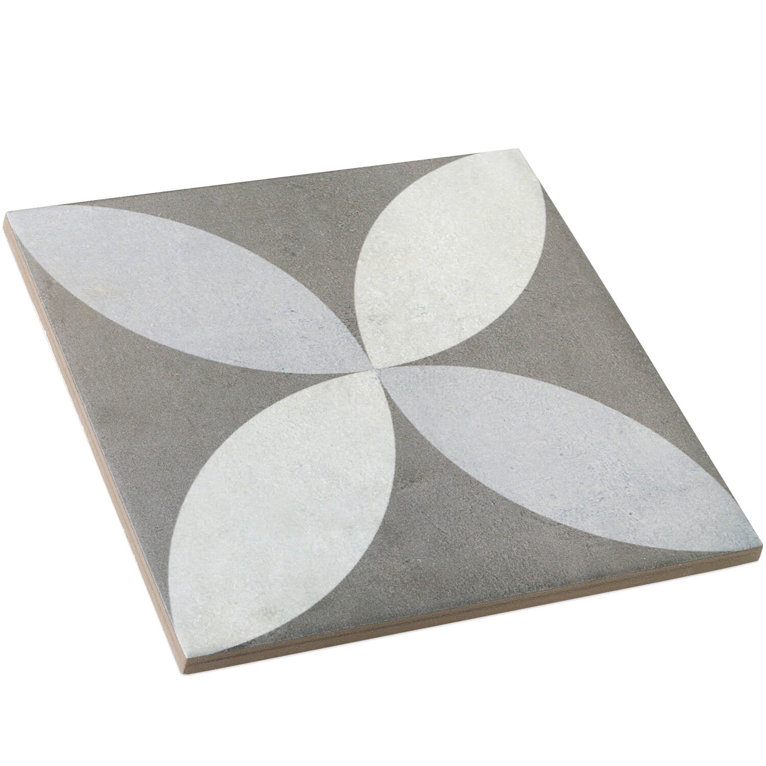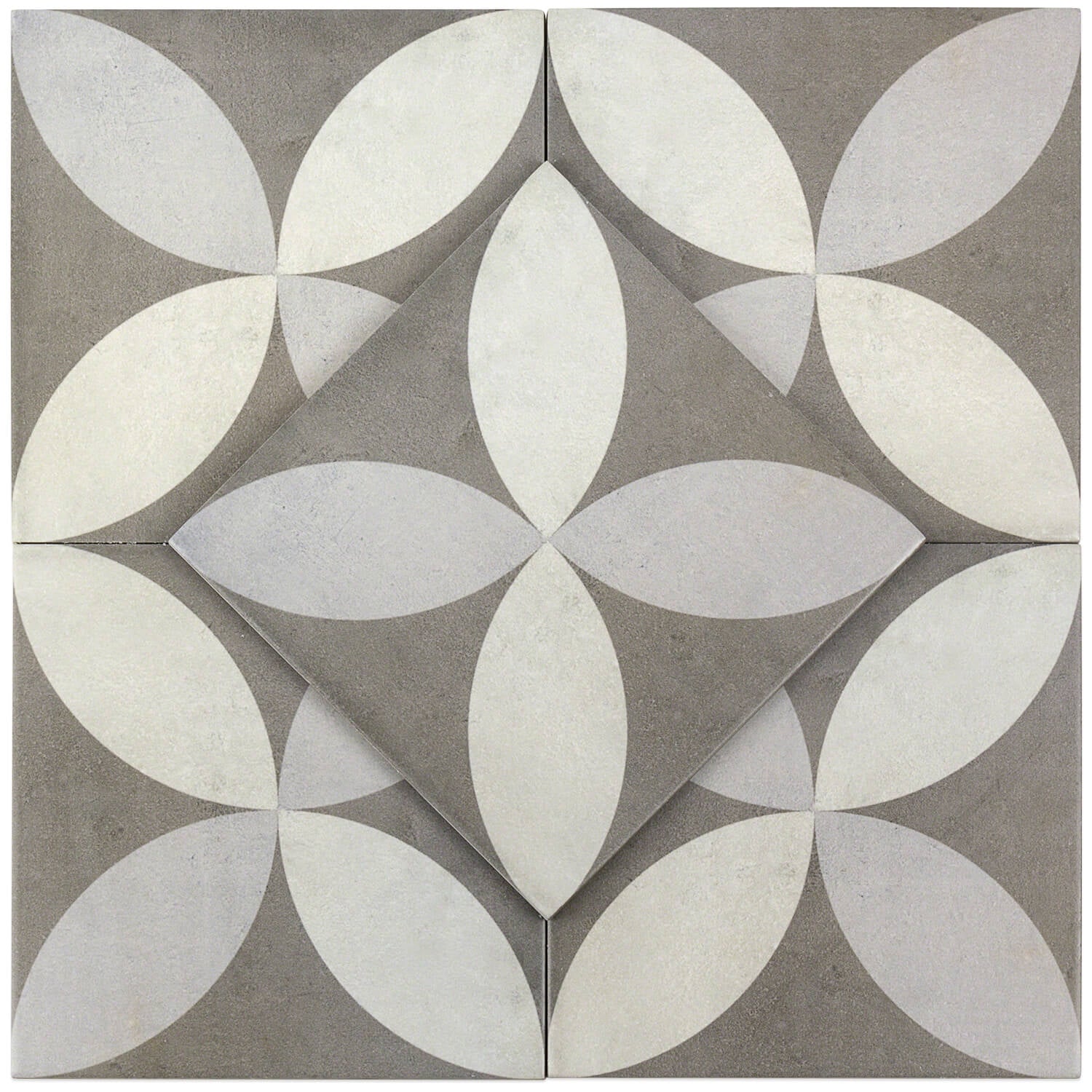 Bella Saatchi Gray 9x9 Matte Porcelain Tile - Encaustic Look