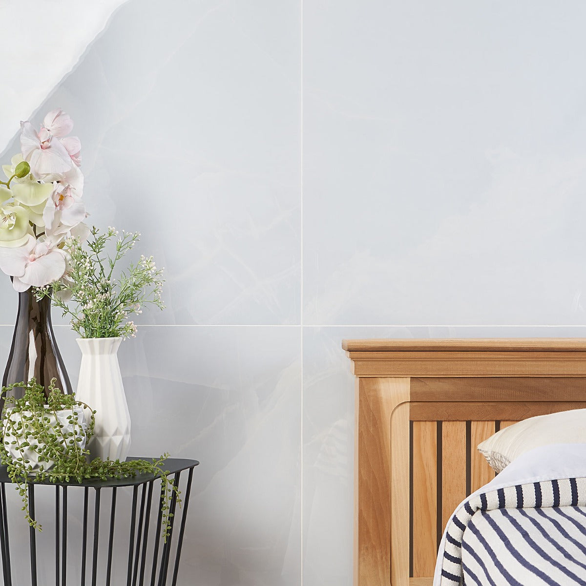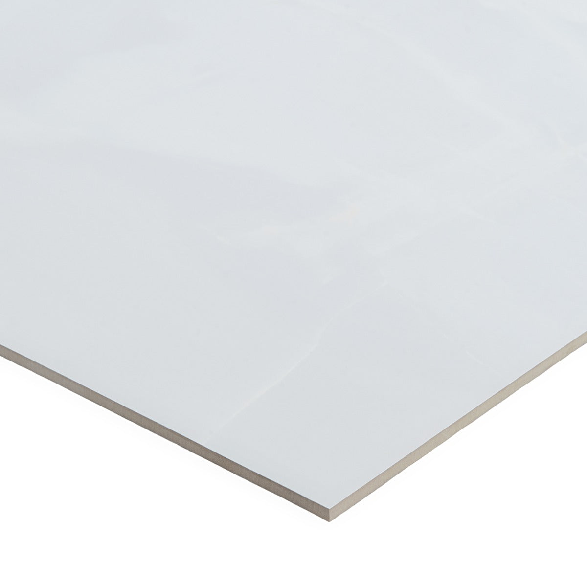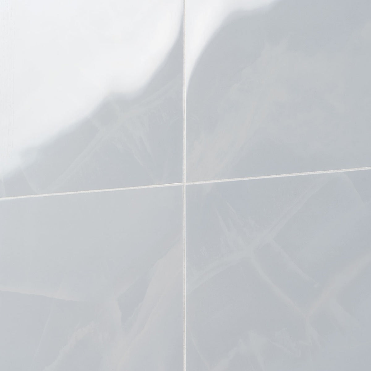 The DreamStone Aztec Onyx Azul tile offers a stunning polished finish that replicates the veining of natural Onyx stone in a light blue shade. Its large format and stain-resistant porcelain material make it ideal for elegant and durable wall installations.