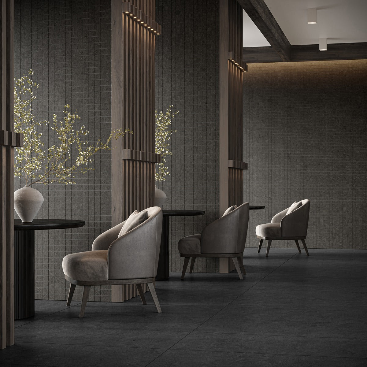 Transform your space with the Era Charcoal Black Porcelain Tile, combining durability and timeless elegance.