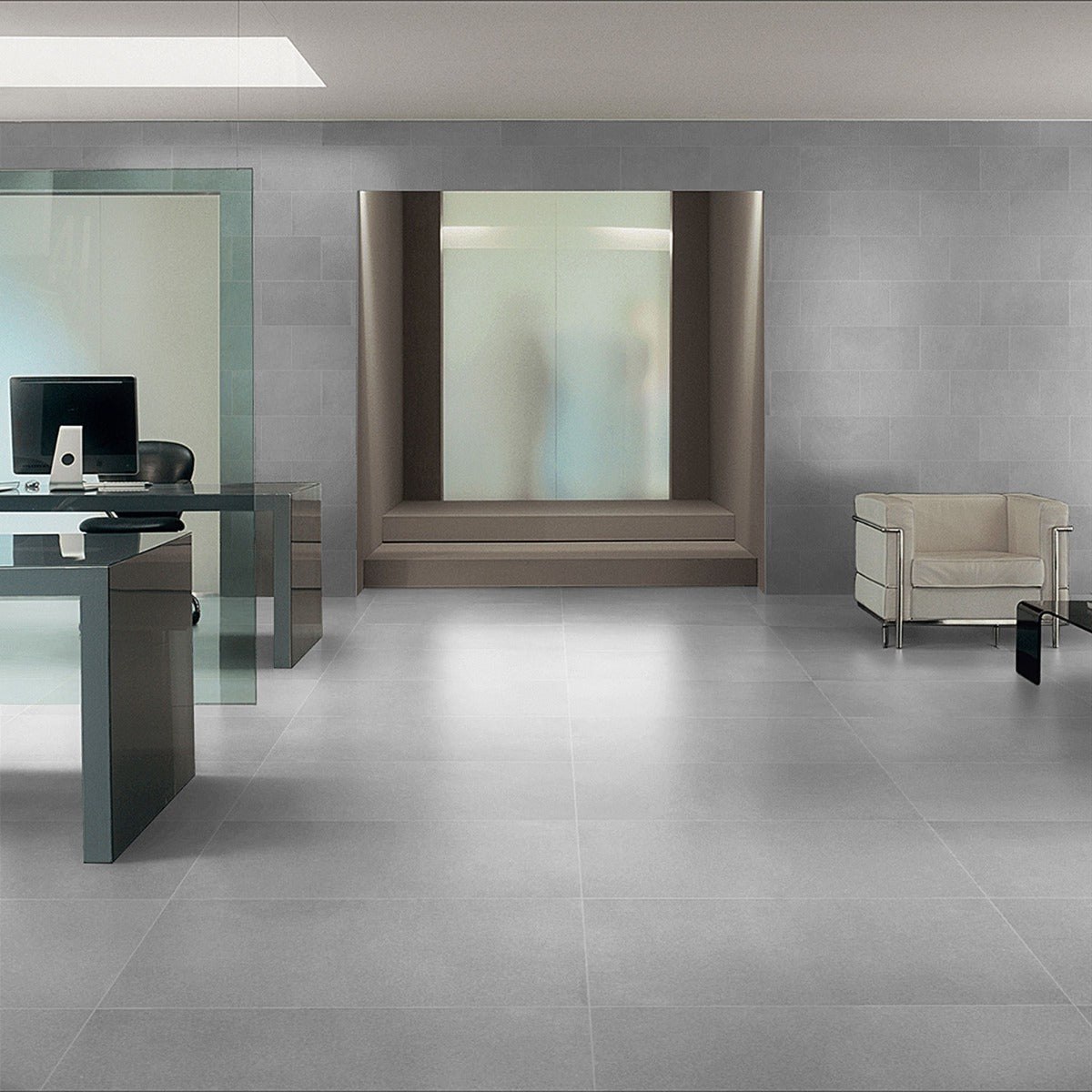 • Large Format Tile: Oversized 24" x 48" dimensions for a modern look.