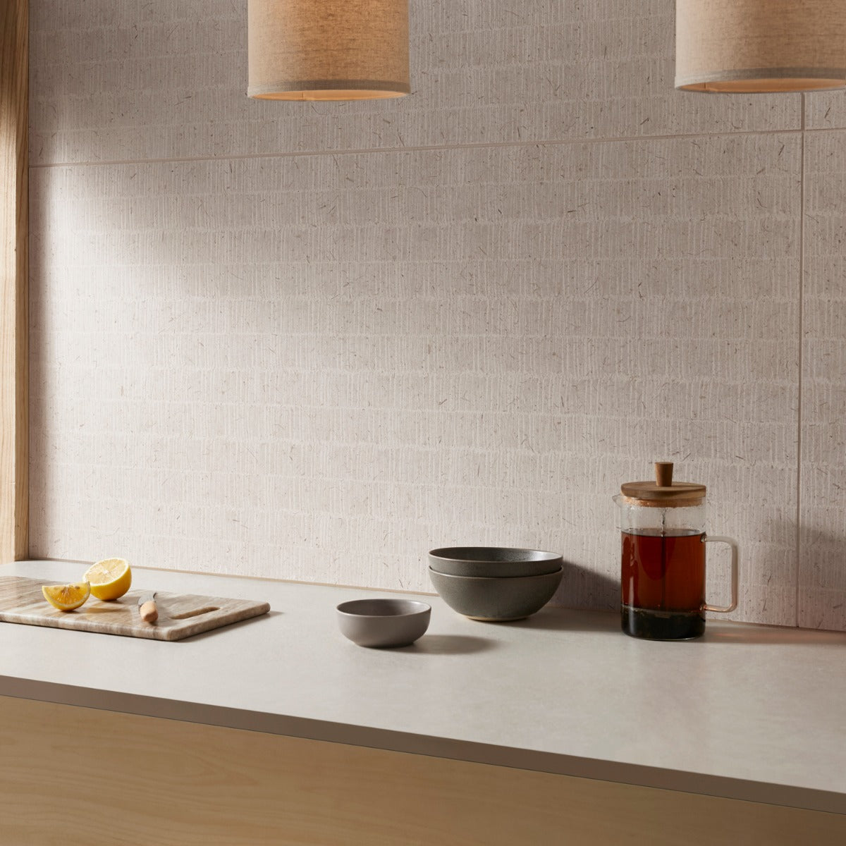 Transform your space with the serene elegance of the Hikari Bamboo Paper Cream Porcelain Tile.