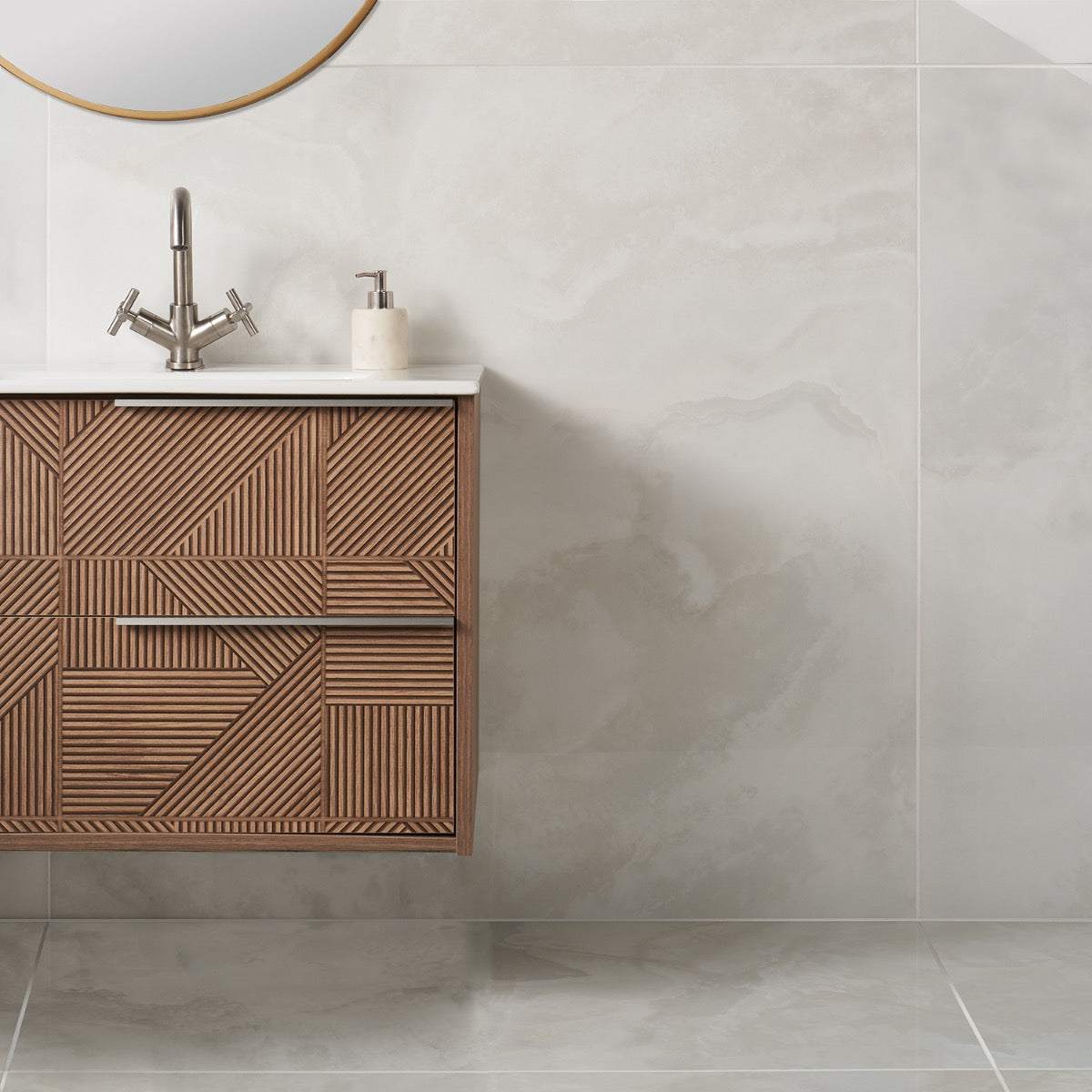 The Jewel Onyx White Polished Porcelain Tile transforms any room into a sanctuary of sophistication. Its polished surface reflects light beautifully, creating an airy and luminous ambiance. Pair it with natural wood accents for a warm, balanced aesthetic or with sleek metallics for a modern edge. This tile is not just a surface—it's a statement of refined taste and enduring style.