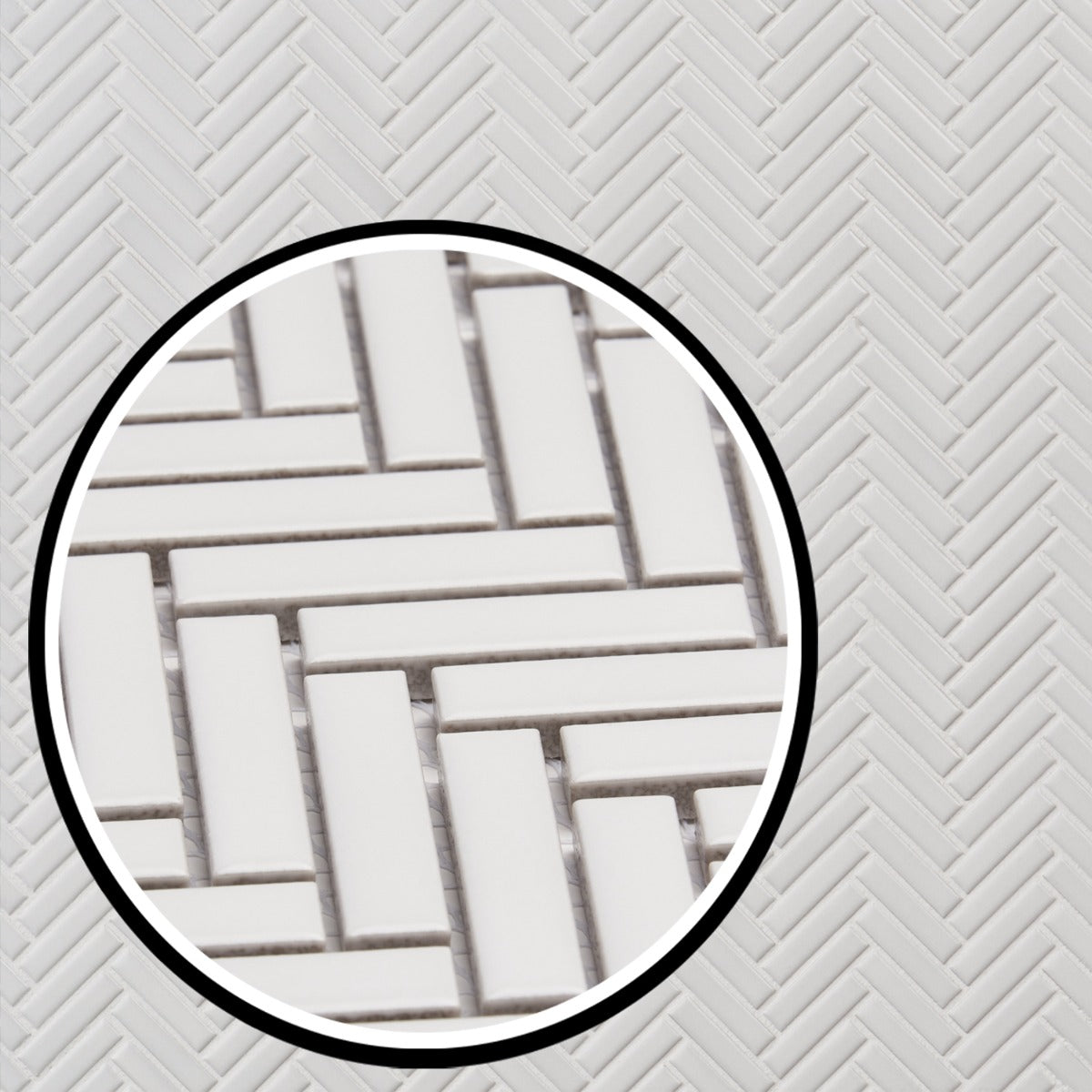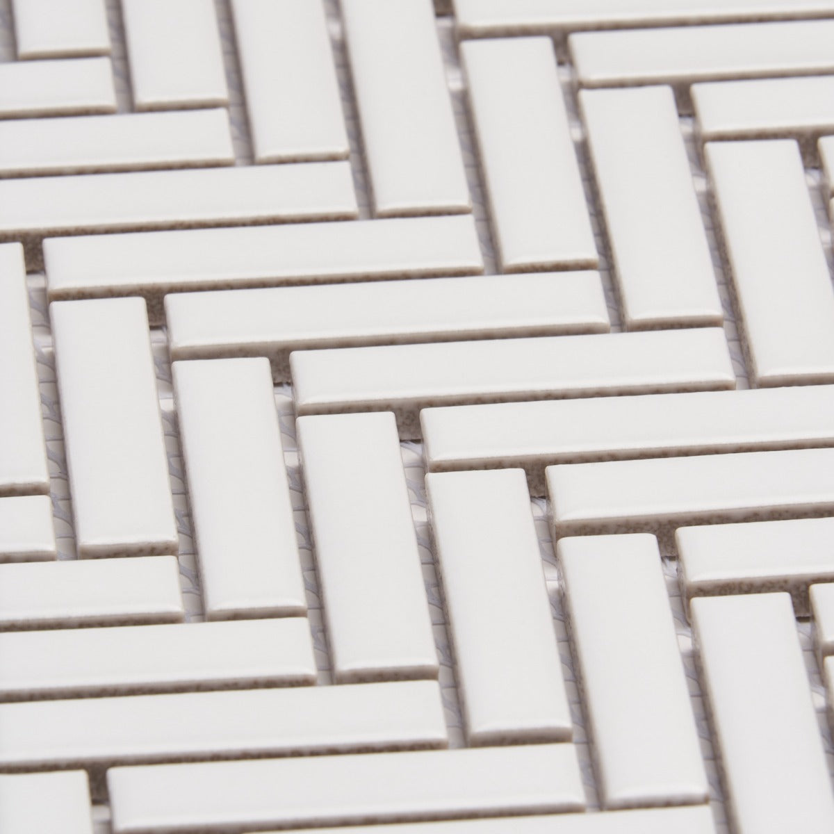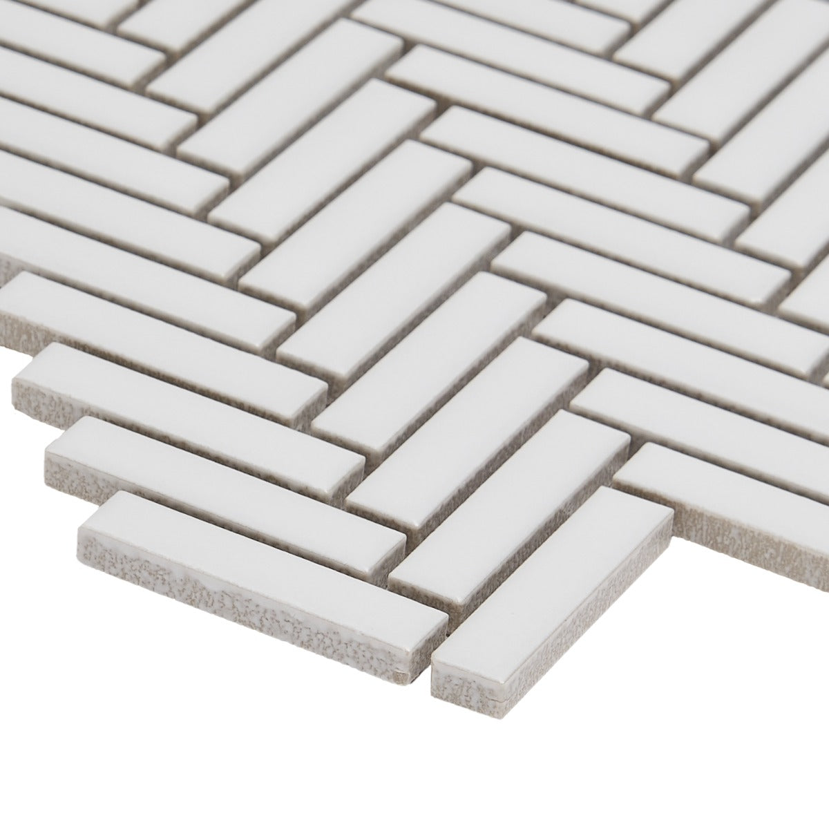 Kai White 1x2" Herringbone Matte Porcelain Mosaic Tile by Lux Tile