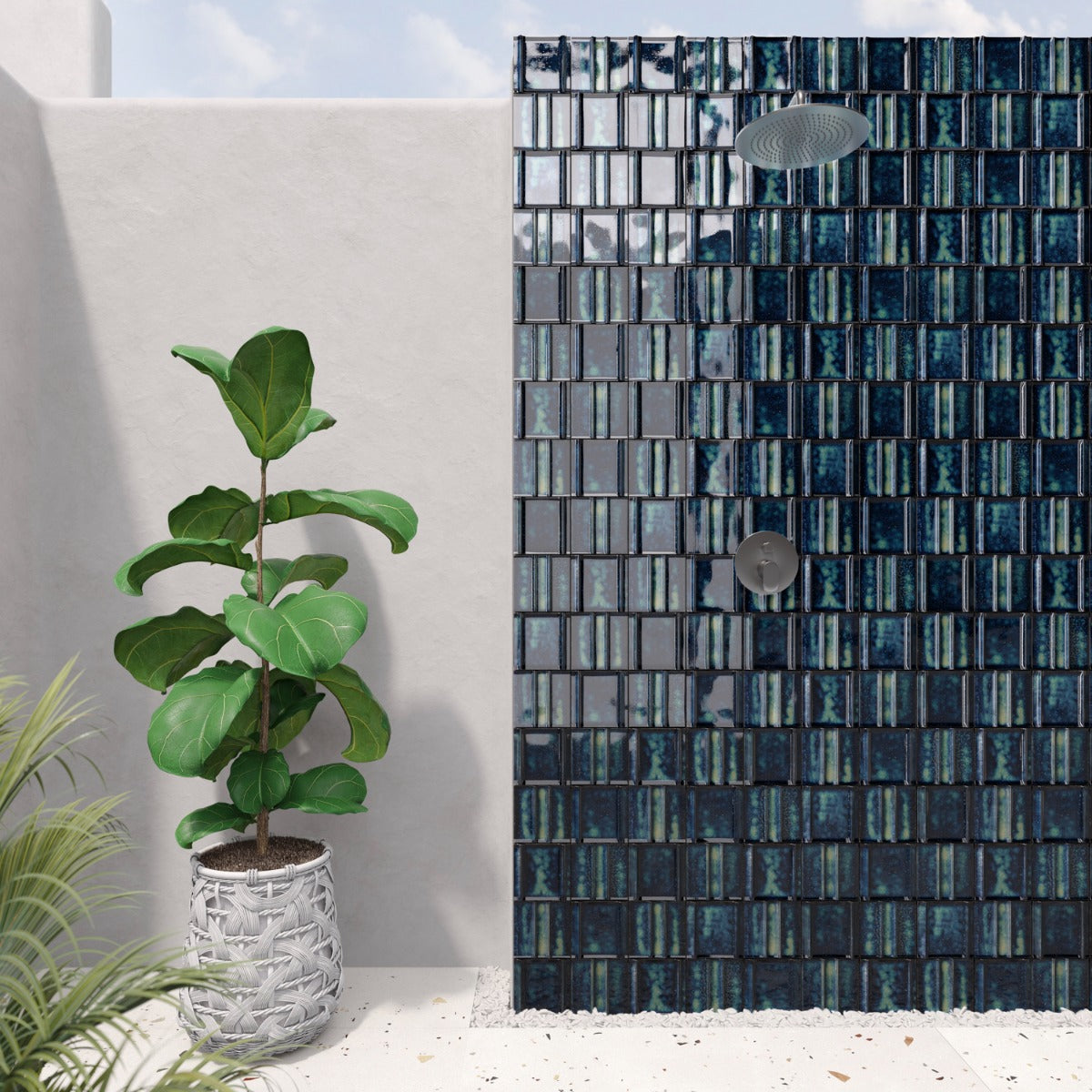 The Kinro Ocean Blue Tile is a masterpiece of design, blending a rich blue-green palette with a captivating 3D metallic texture. Its reactive glaze adds depth and character, making each tile a unique work of art. Perfect for creating a statement backsplash or a serene shower retreat, this tile transforms ordinary spaces into luxurious sanctuaries. Embrace the fusion of traditional craftsmanship and modern aesthetics with this exquisite porcelain tile.