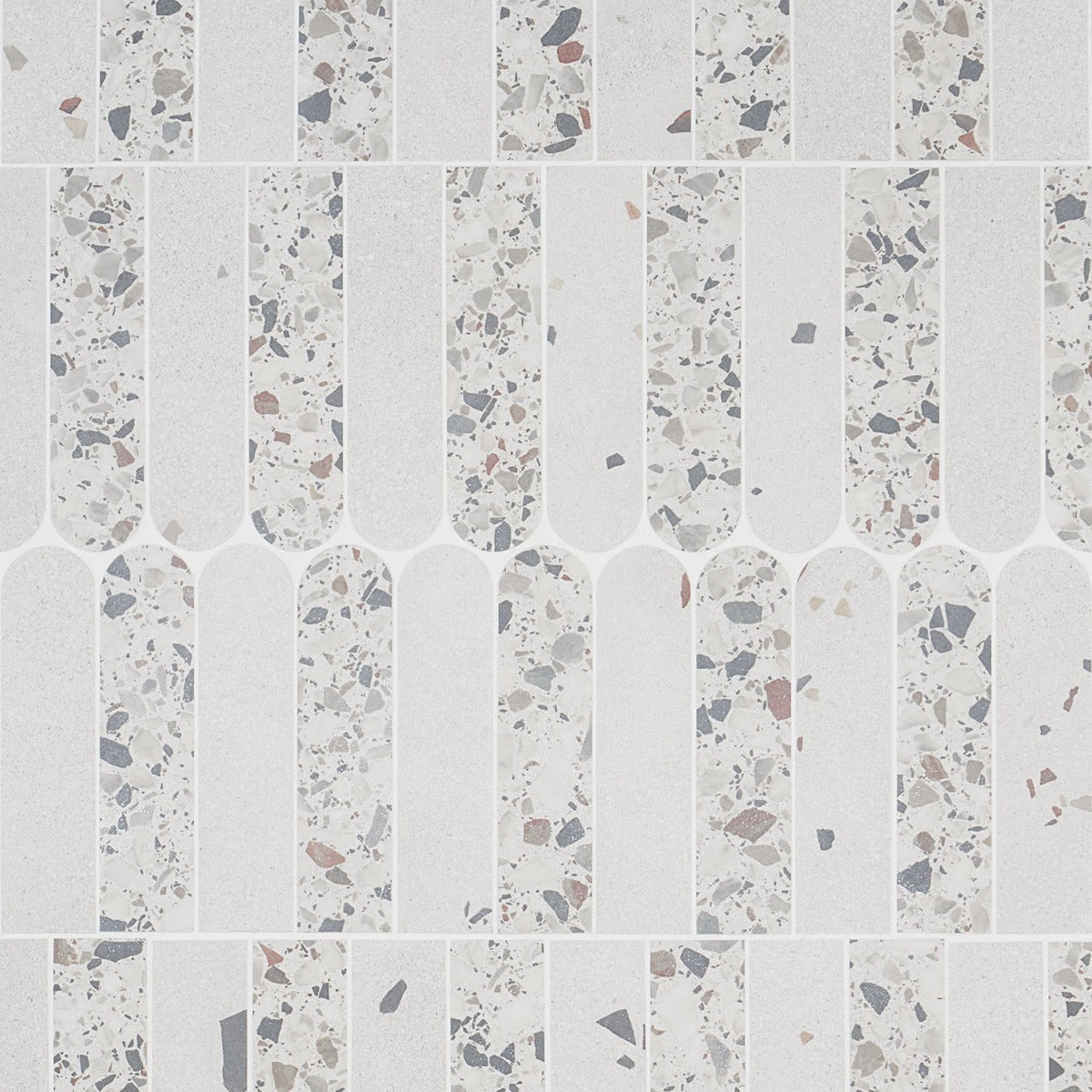 Kobe Fin Ice White Terrazzo Look Matte Porcelain Mosaic Tile