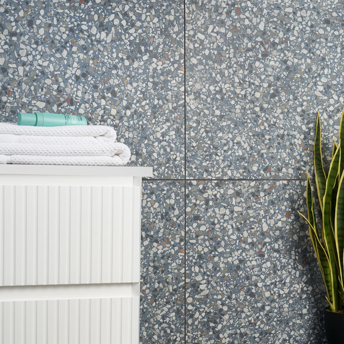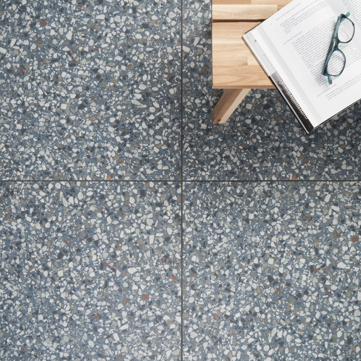 Kobe Flakes Ocean Blue 24x24 Terrazzo Look Matte Porcelain Tile - Lux Tile