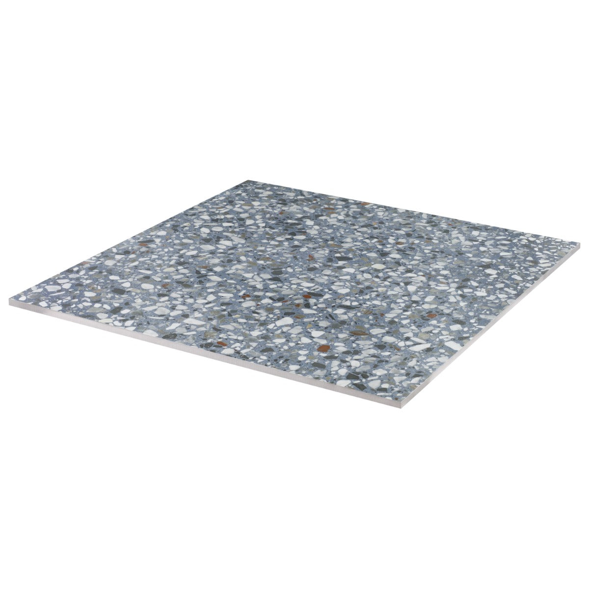 The Kobe Flakes Ocean Blue 24x24 Terrazzo Look Matte Porcelain Tile combines timeless terrazzo aesthetics with modern durability. Made in Italy, this tile features multicolored chips on a sea-colored background, perfect for both indoor and outdoor applications.