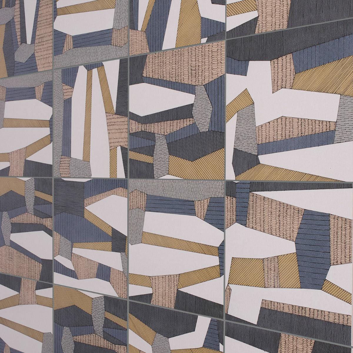 The Kunano 12x12 Textured Porcelain Tile combines a colorful geometric design with a matte textured finish, emulating woven fabric. Perfect for walls and floors, it offers durability and a unique aesthetic for both residential and commercial spaces.