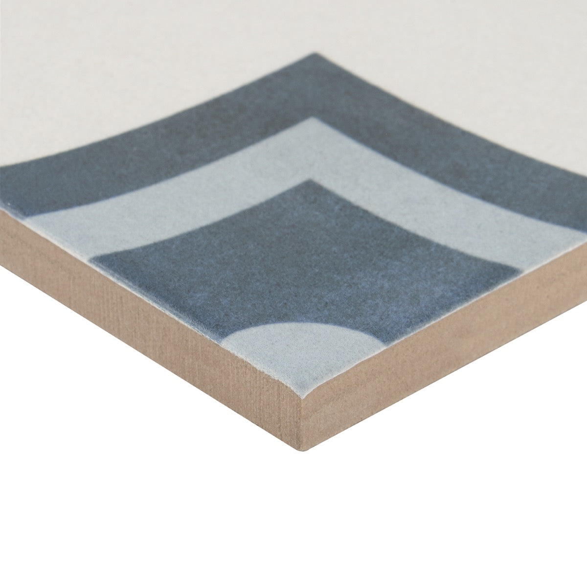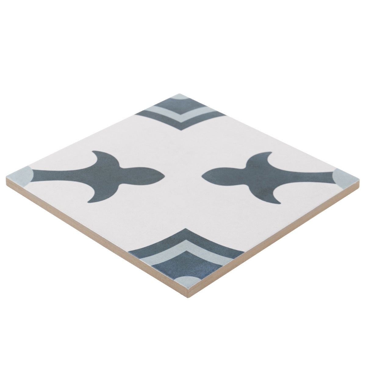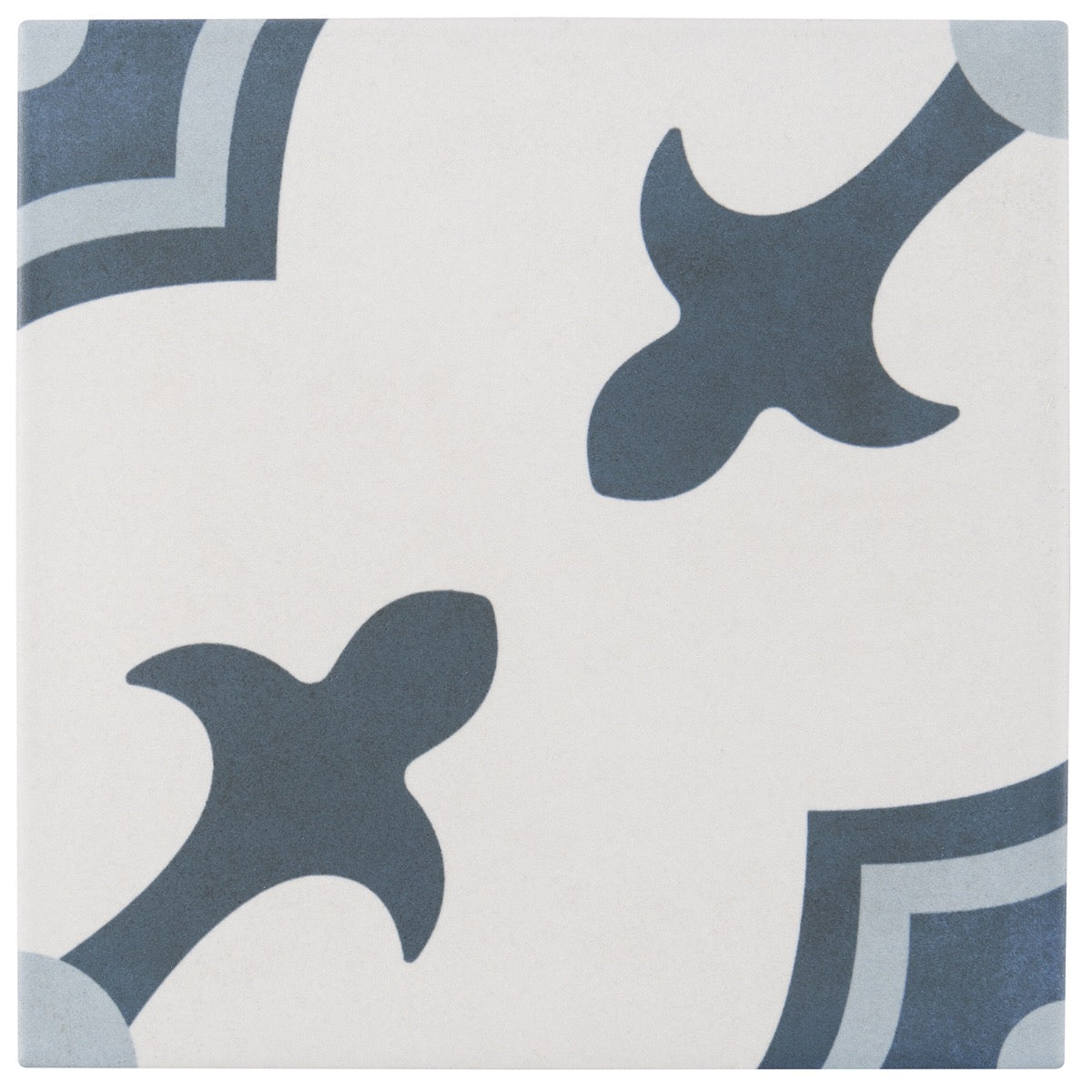 Lapaz White & Blue Herald 9x9 Matte Porcelain Tile - Mediterranean Design