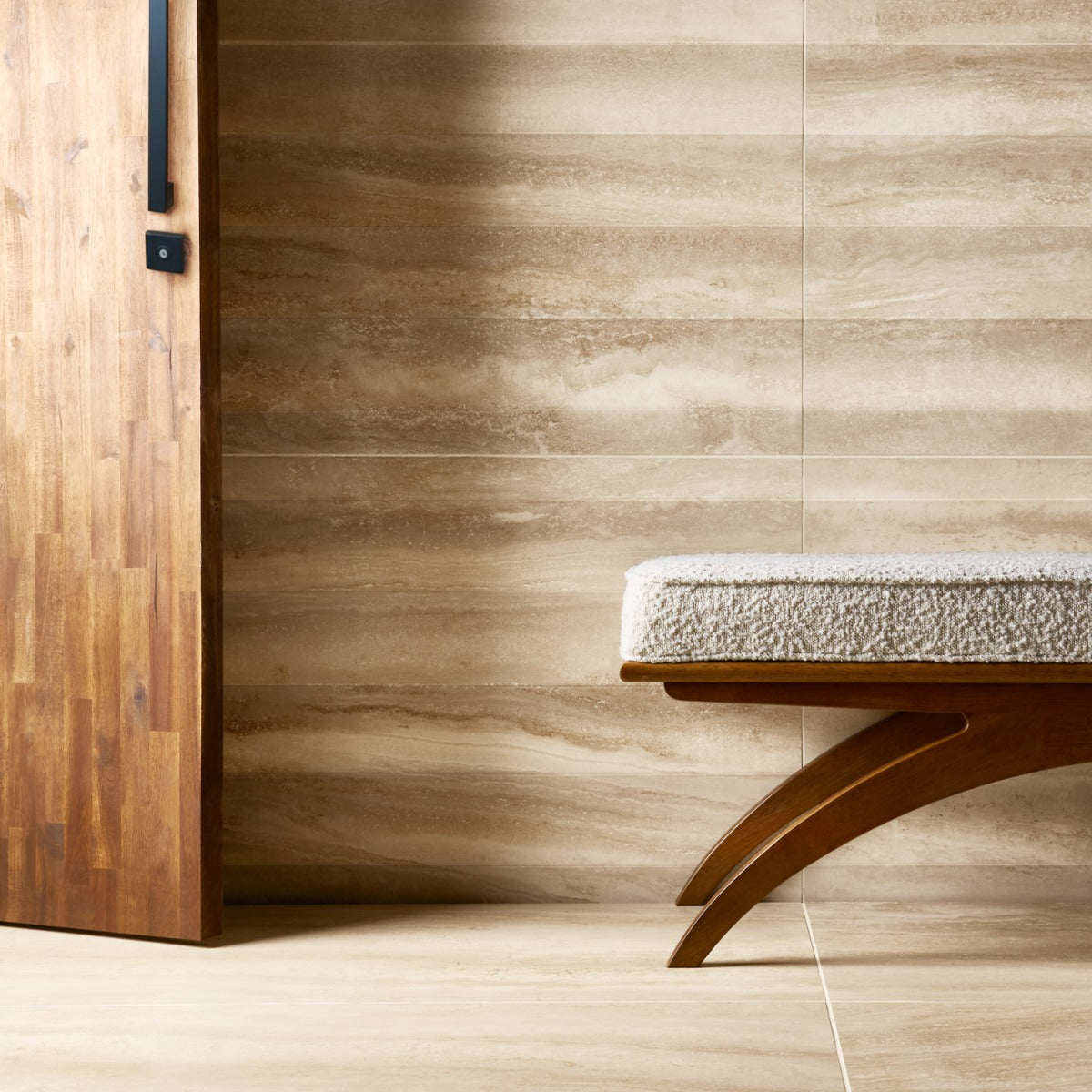 Lumar Waves 3D Travertino Crema Beige 24x48 Matte Porcelain Tile