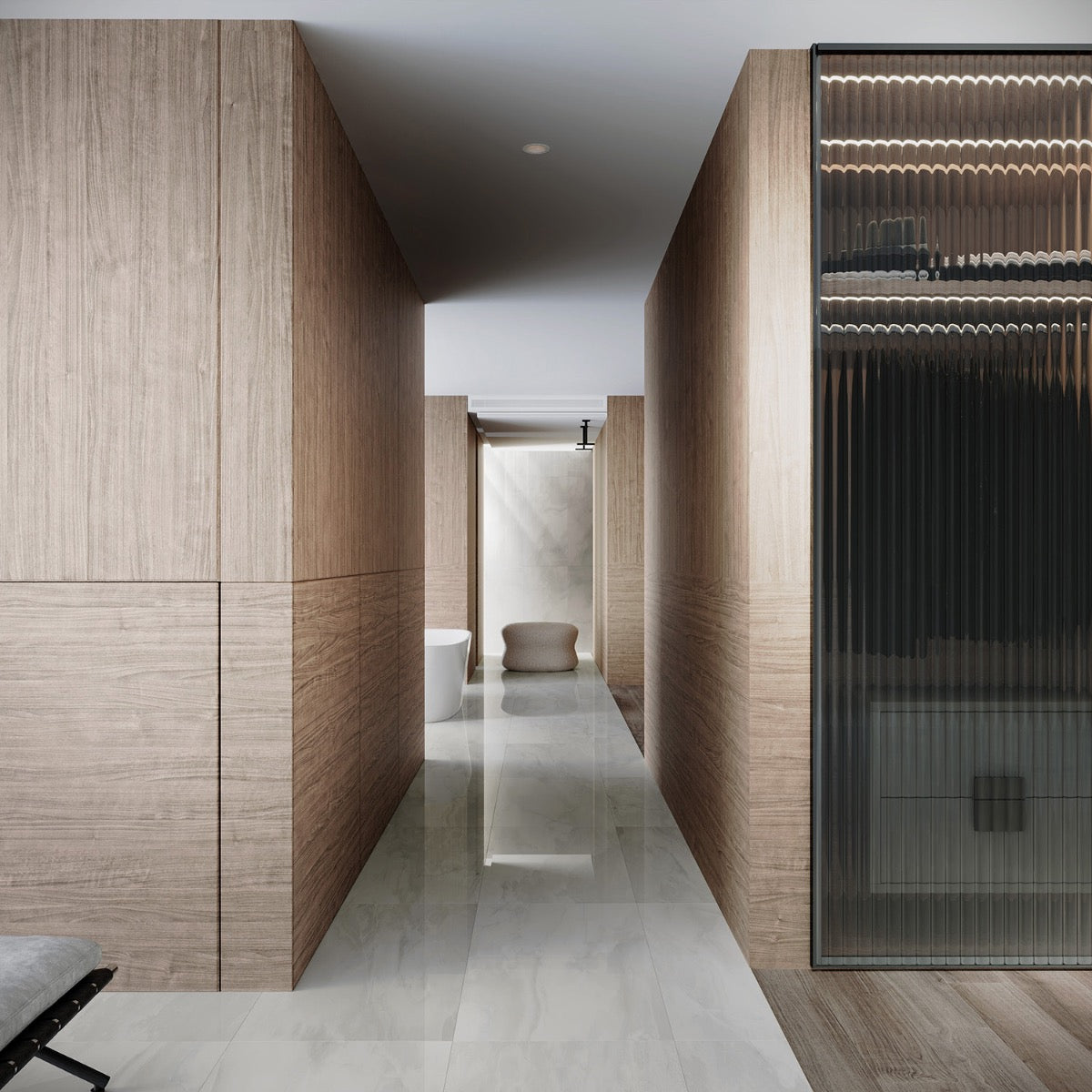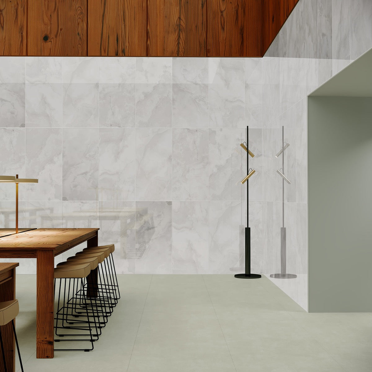The Jewel Onyx White Tile transforms interiors with its luminous polished surface, reminiscent of rare white onyx. Its large format design creates a seamless and sophisticated look, perfect for modern spaces. Pair it with minimalist furniture to highlight its gem-like beauty. This tile is a testament to luxurious living, combining aesthetic appeal with practical durability.