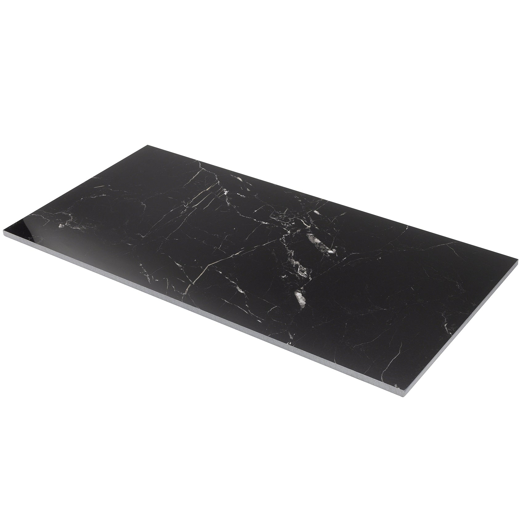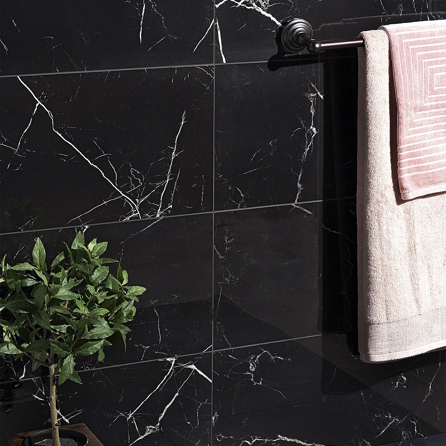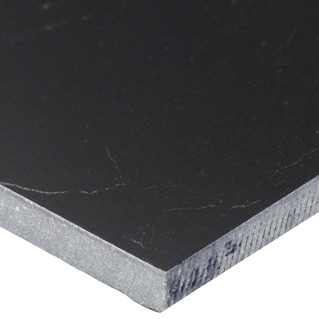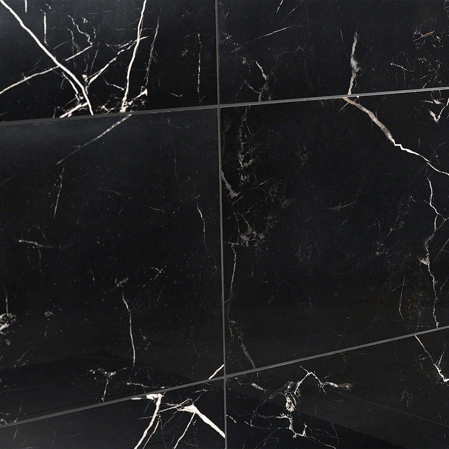 The Marble Tech Port Laurent Black Tile offers a sophisticated marble look with striking white veining on a polished black surface. Perfect for floors and backsplashes, it combines elegance with the durability of porcelain.