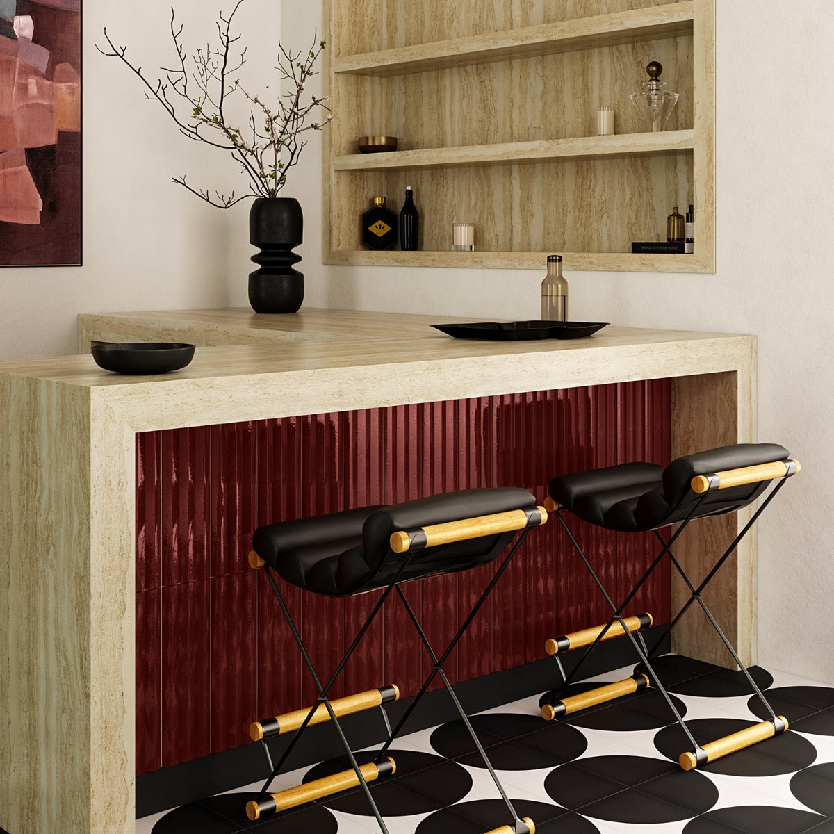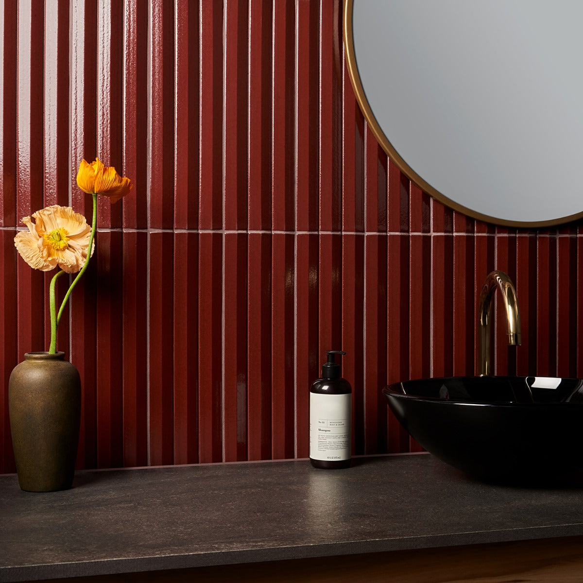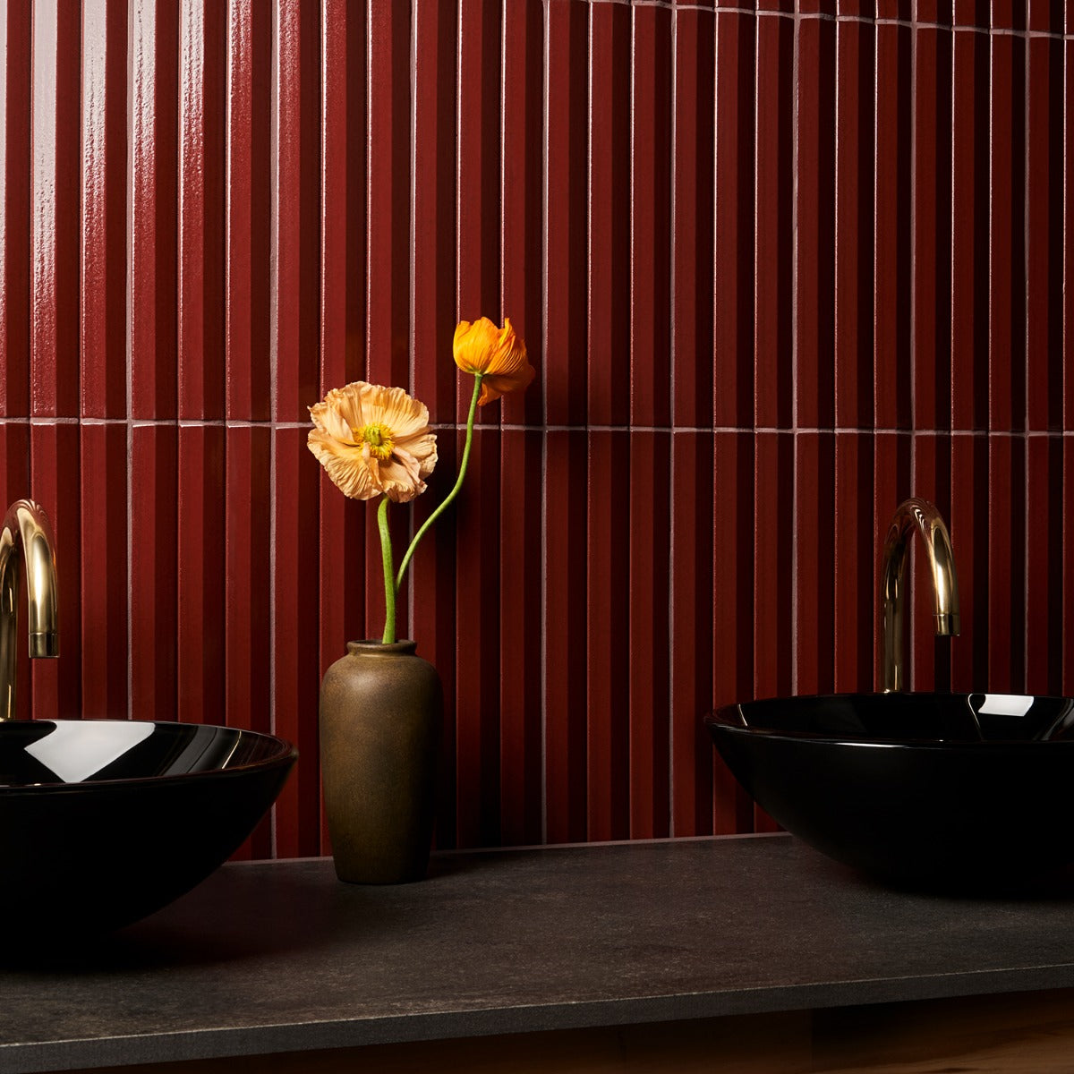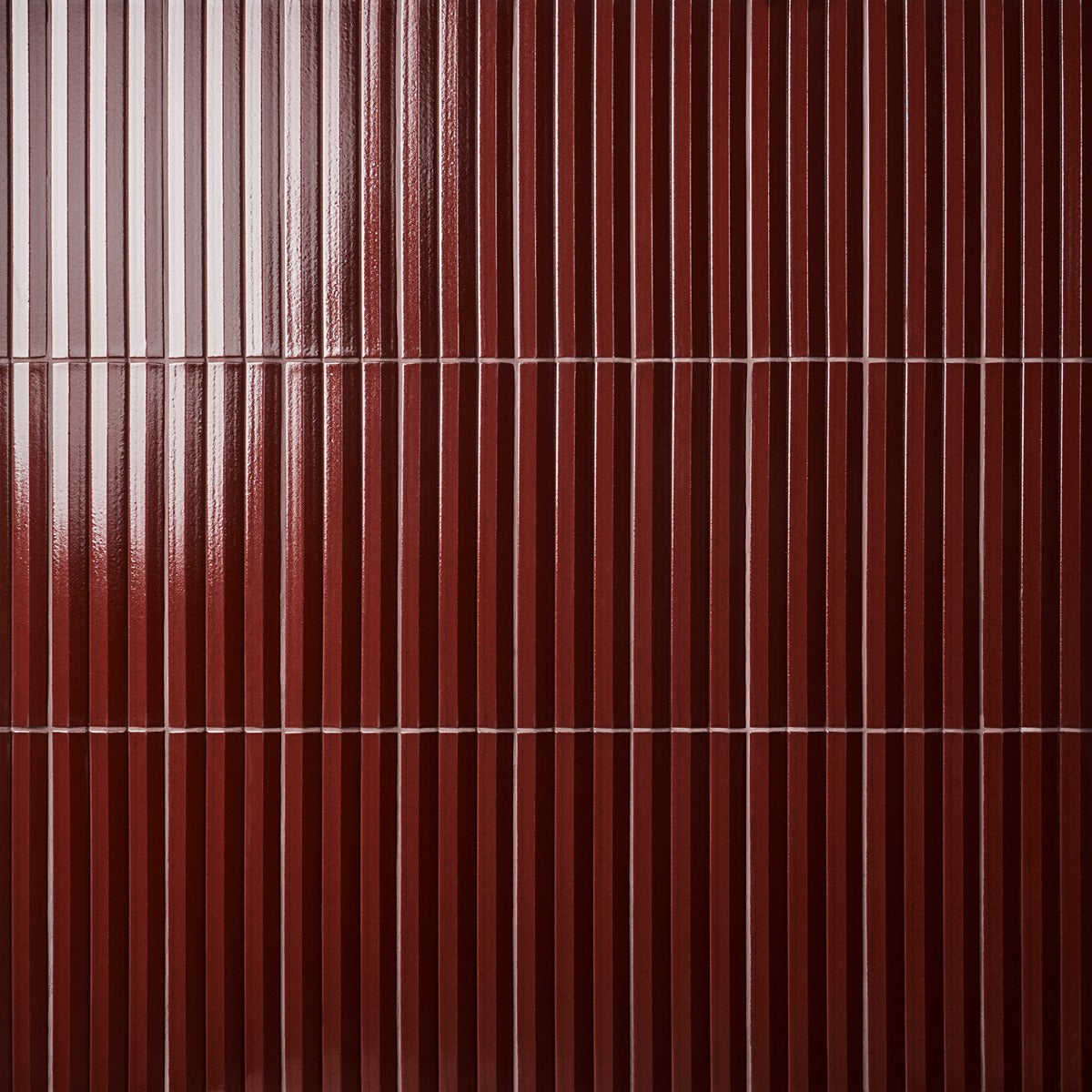 Transform your space with the Ponto Ruby Red Fluted 3D Polished Porcelain Tile today!
