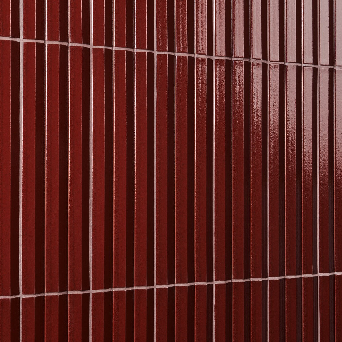 Lux Tile Ponto Ruby Red Fluted 5x16 3D Polished Porcelain Wall Tile