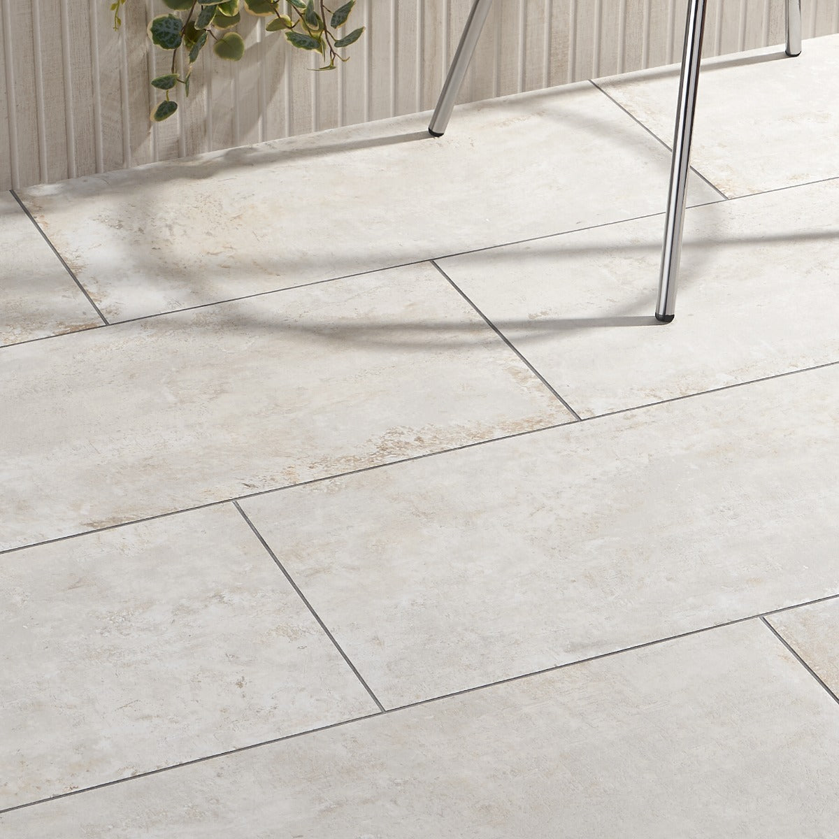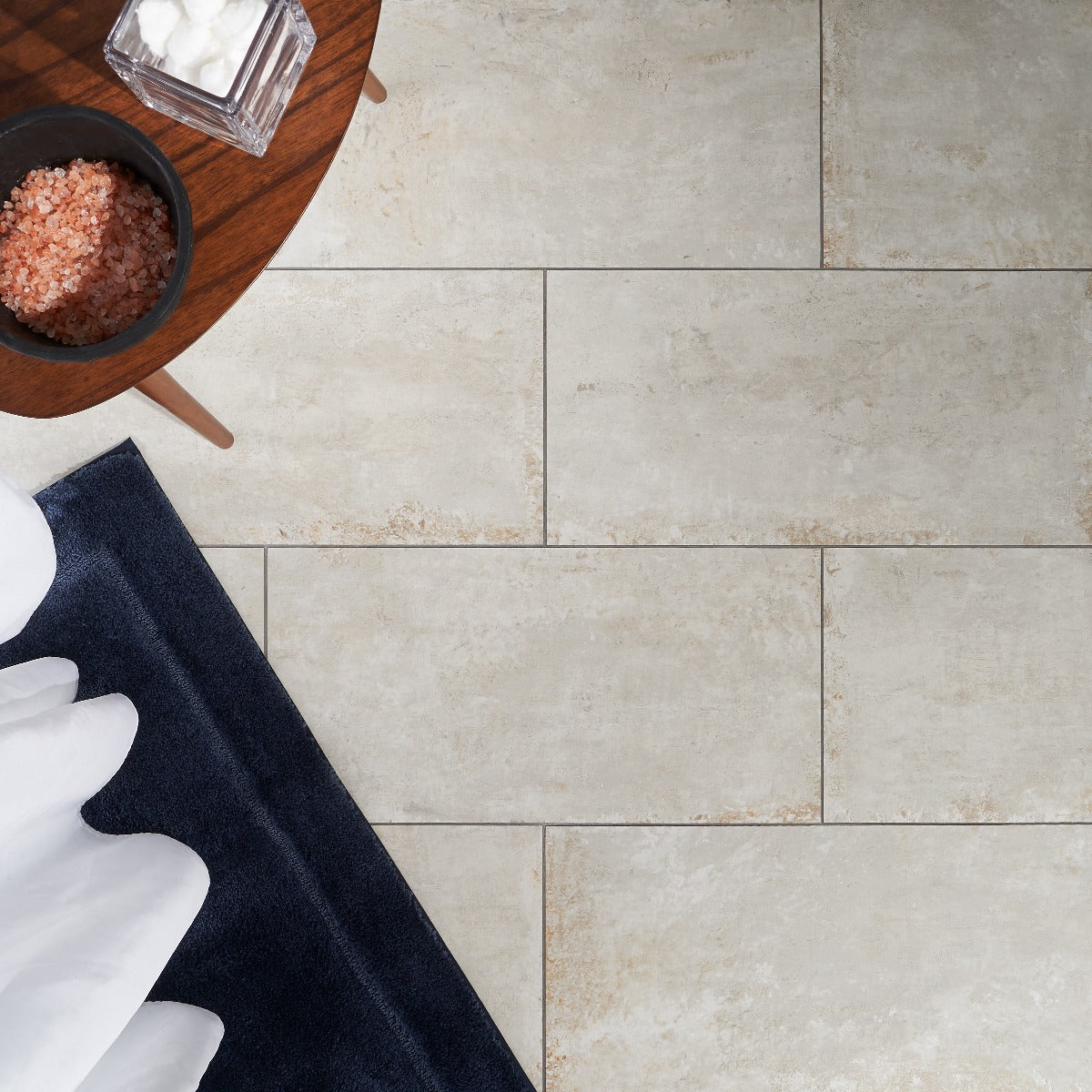 The Portrait Ivory Matte Porcelain Tile offers a sophisticated oxidized concrete look with metallic hues, perfect for creating a modern and artistic space. Its large format and matte finish make it versatile for both indoor and outdoor installations.