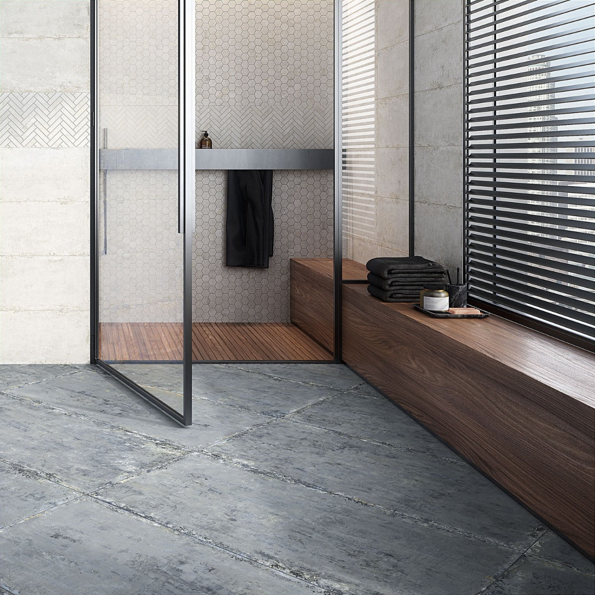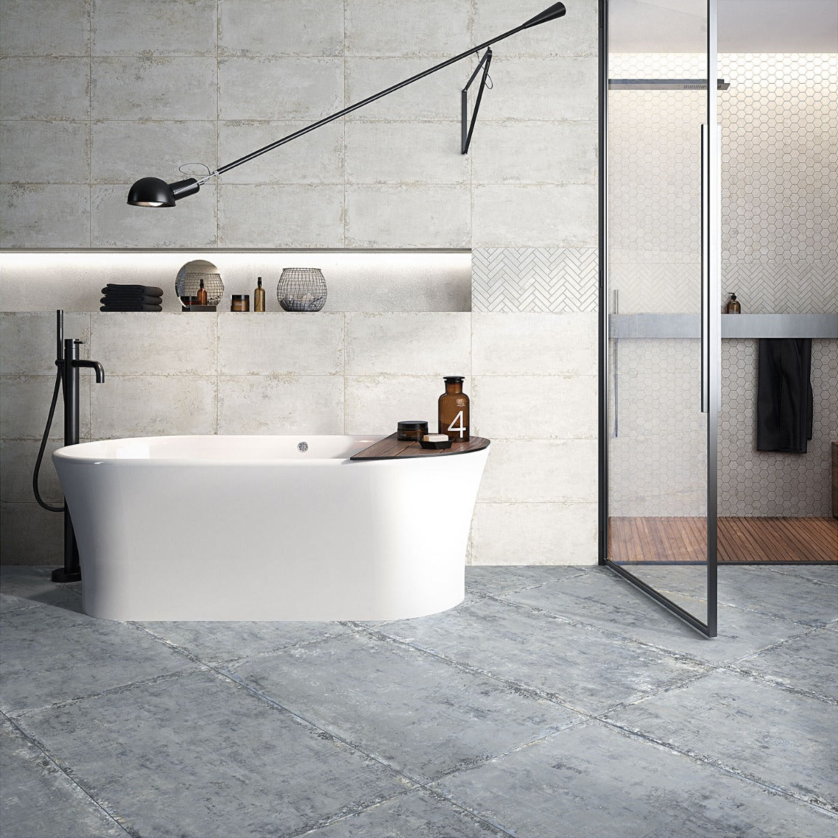 The Portrait Ocean Blue tile is a masterpiece of design, blending oxidized concrete textures with metallic-infused hues to create a captivating visual effect. Its oversized format adds grandeur to any room, while the multi-faceted blue tones evoke a sense of tranquility and sophistication. Pair it with minimalist decor to highlight its artistic charm, or use it as a bold statement piece in industrial-inspired interiors. This tile is not just a surface—it's a canvas for luxurious living.