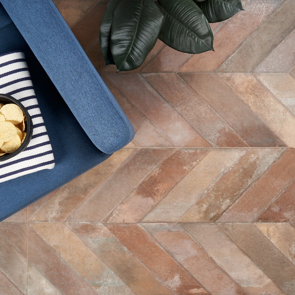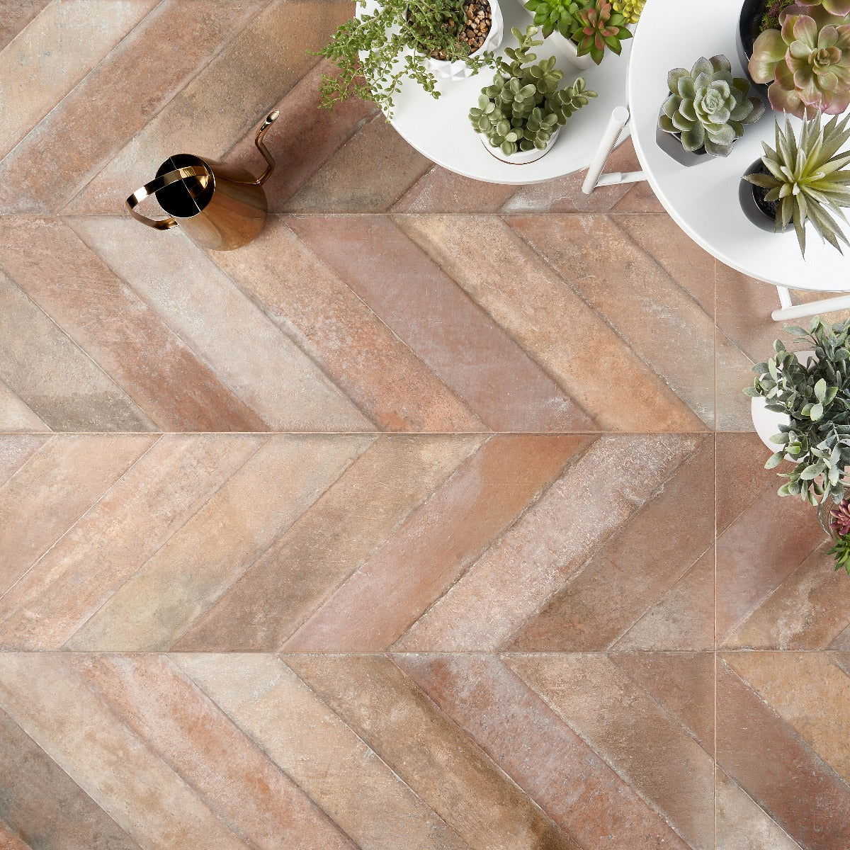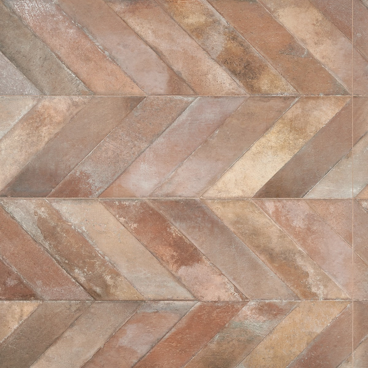 The Sculpt Cotto Brown Chevron Tile combines rustic terracotta aesthetics with modern design, featuring a natural finish and chevron pattern. Perfect for residential and commercial spaces, it offers durability and style.