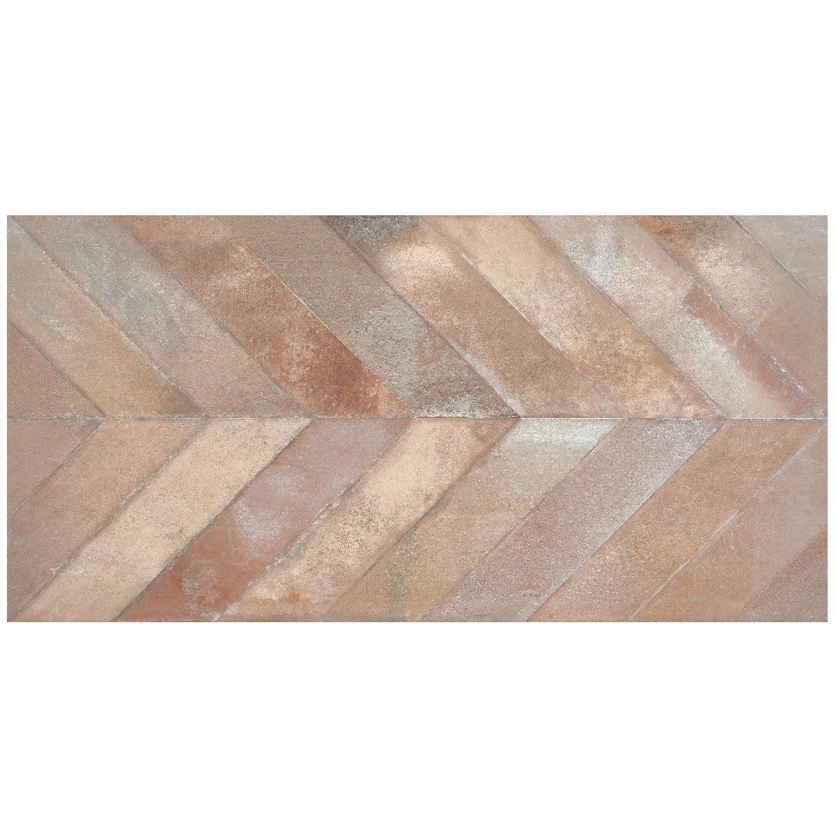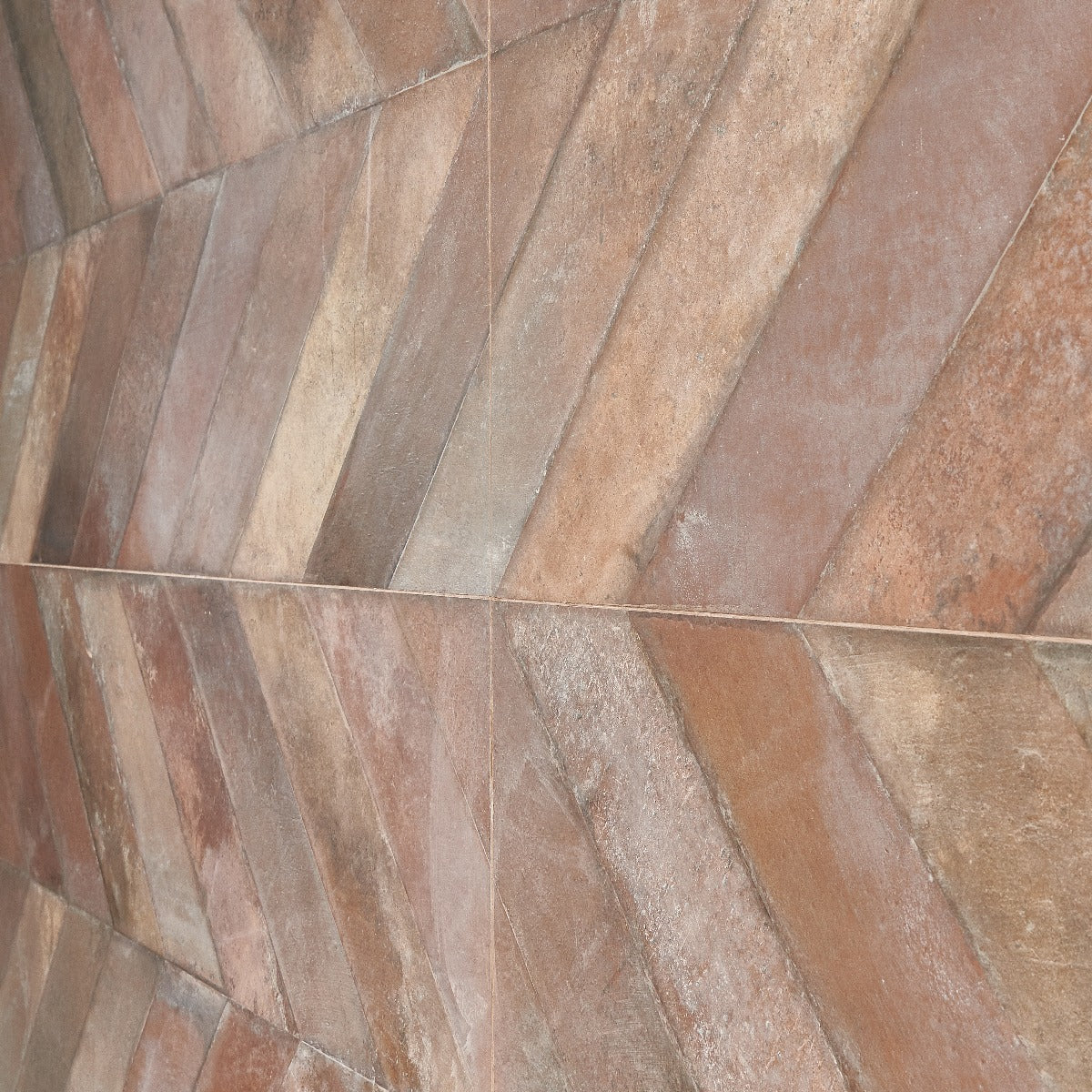 Lux Tile Sculpt Cotto Brown Chevron Porcelain Tile 24x48