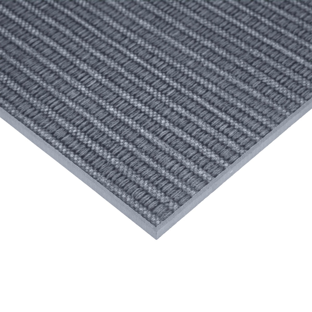 A: The tile features a matte textured finish that mimics the look of woven fabric.