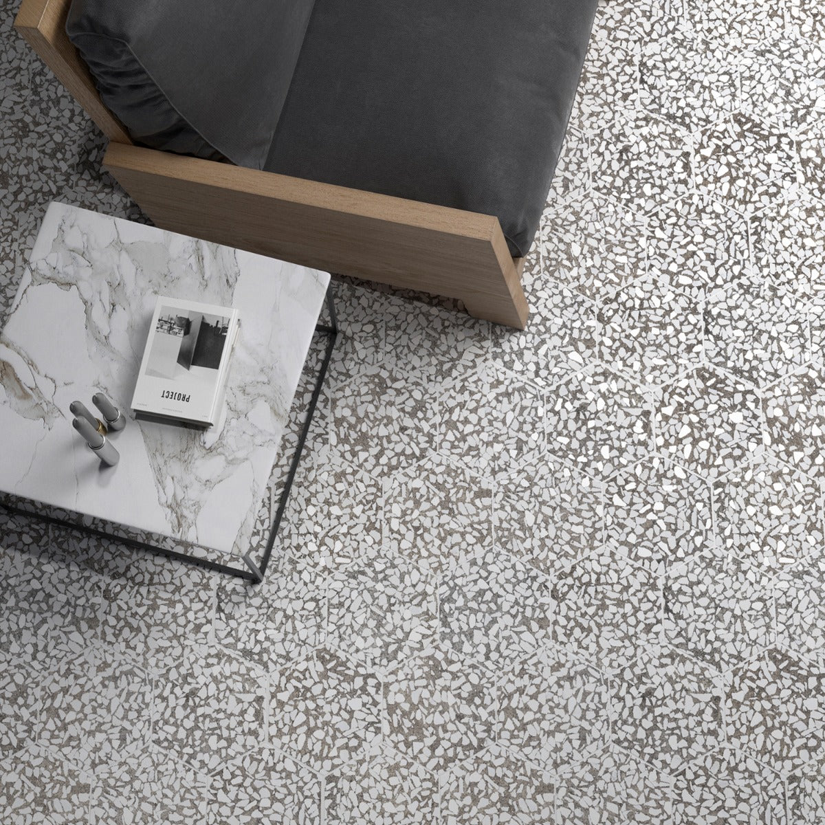 The Terrazzo Hex Grigio Tile is a masterpiece of modern design, blending the timeless charm of terrazzo with the bold geometry of hexagonal shapes. Its matte finish and unique stone patterns create a sophisticated backdrop for any room. Use it to craft a striking feature wall or a seamless floor that exudes contemporary elegance. This tile is not just a choice; it's a statement of refined taste and luxurious living.