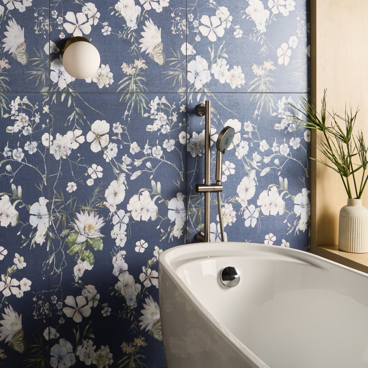 The Wakana Winter Blue tile is a masterpiece of design, blending the delicate beauty of Japanese floral motifs with the durability of porcelain. Its matte finish and large format create a striking visual impact, perfect for transforming walls into works of art. Pair it with minimalist decor to let its intricate patterns shine, or use it as a bold statement piece in a luxurious setting. This tile is not just a surface—it's an experience of refined artistry.