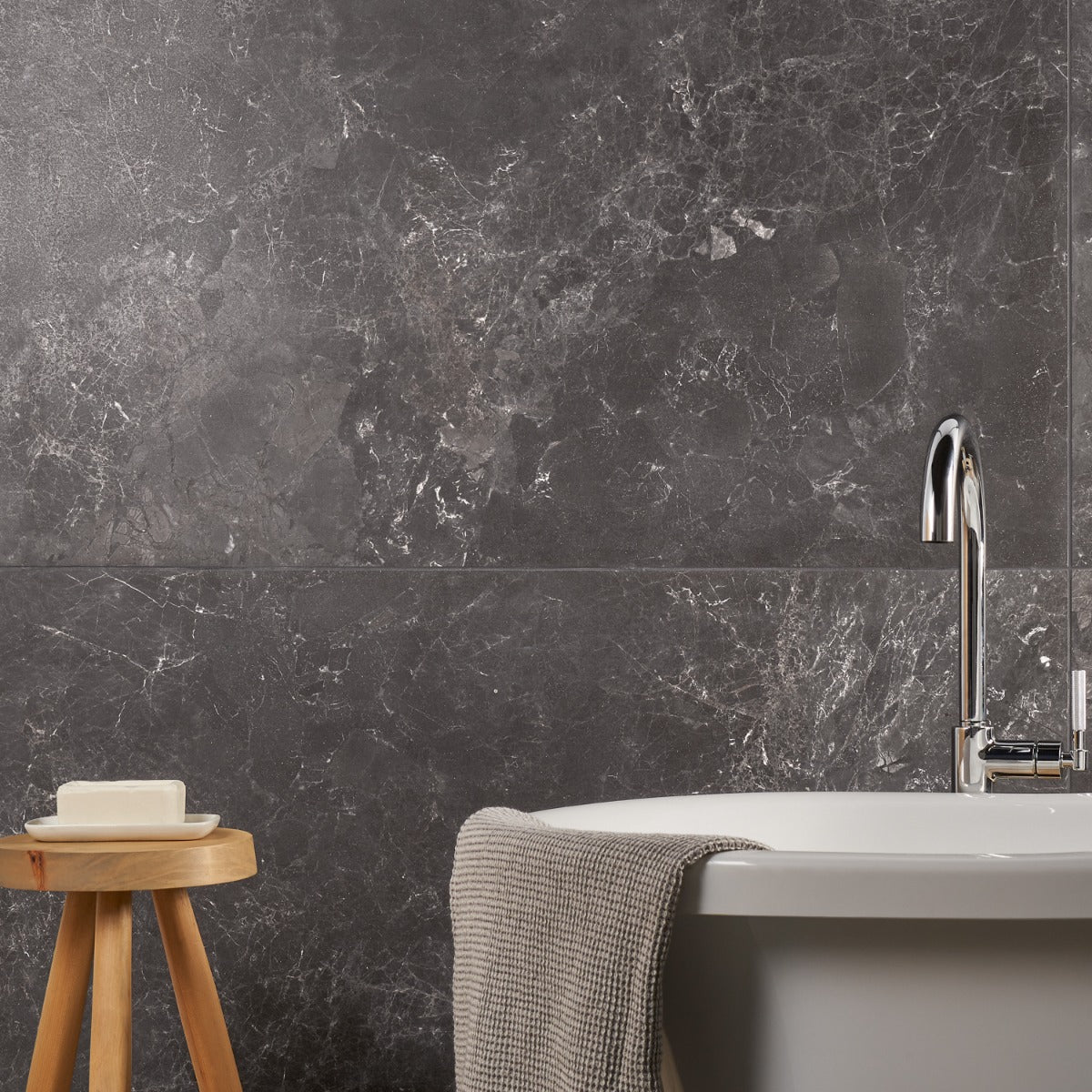 Elevate your space with the timeless elegance of Marmo Perfetto Nero tiles—order now to transform your interiors.