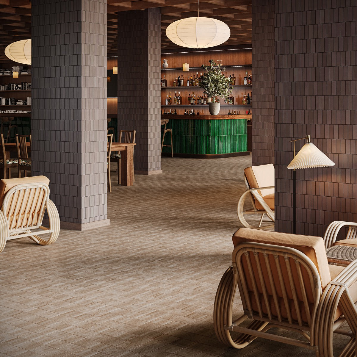 A: This tile is perfect for kitchens, bathrooms, and poolside areas, adding a laid-back character to any space.