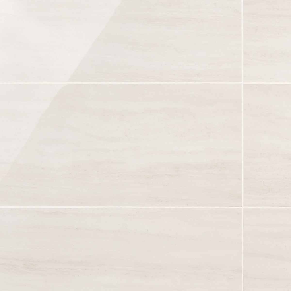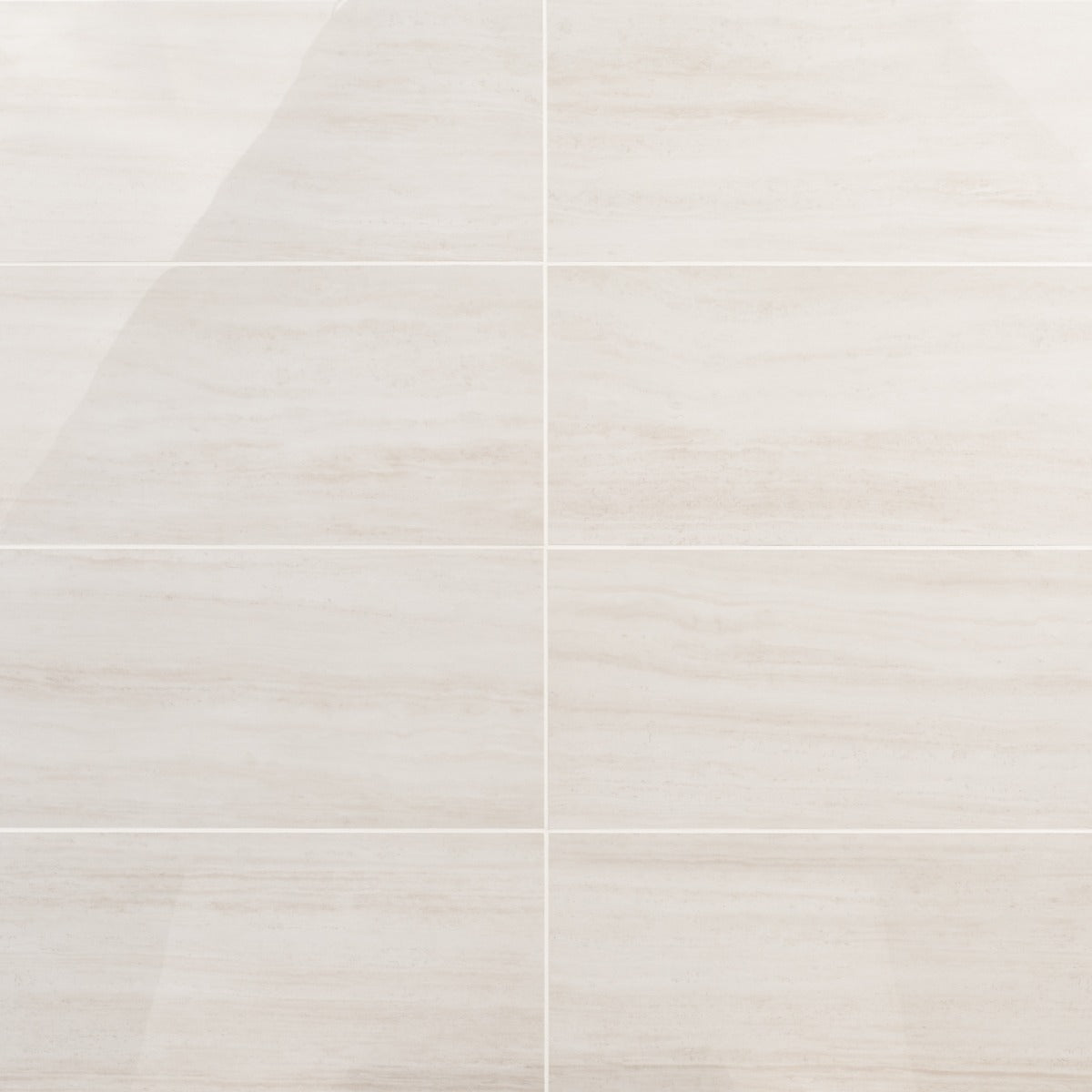 Nashville White 12x24 Polished Porcelain Tile - Travertine Look