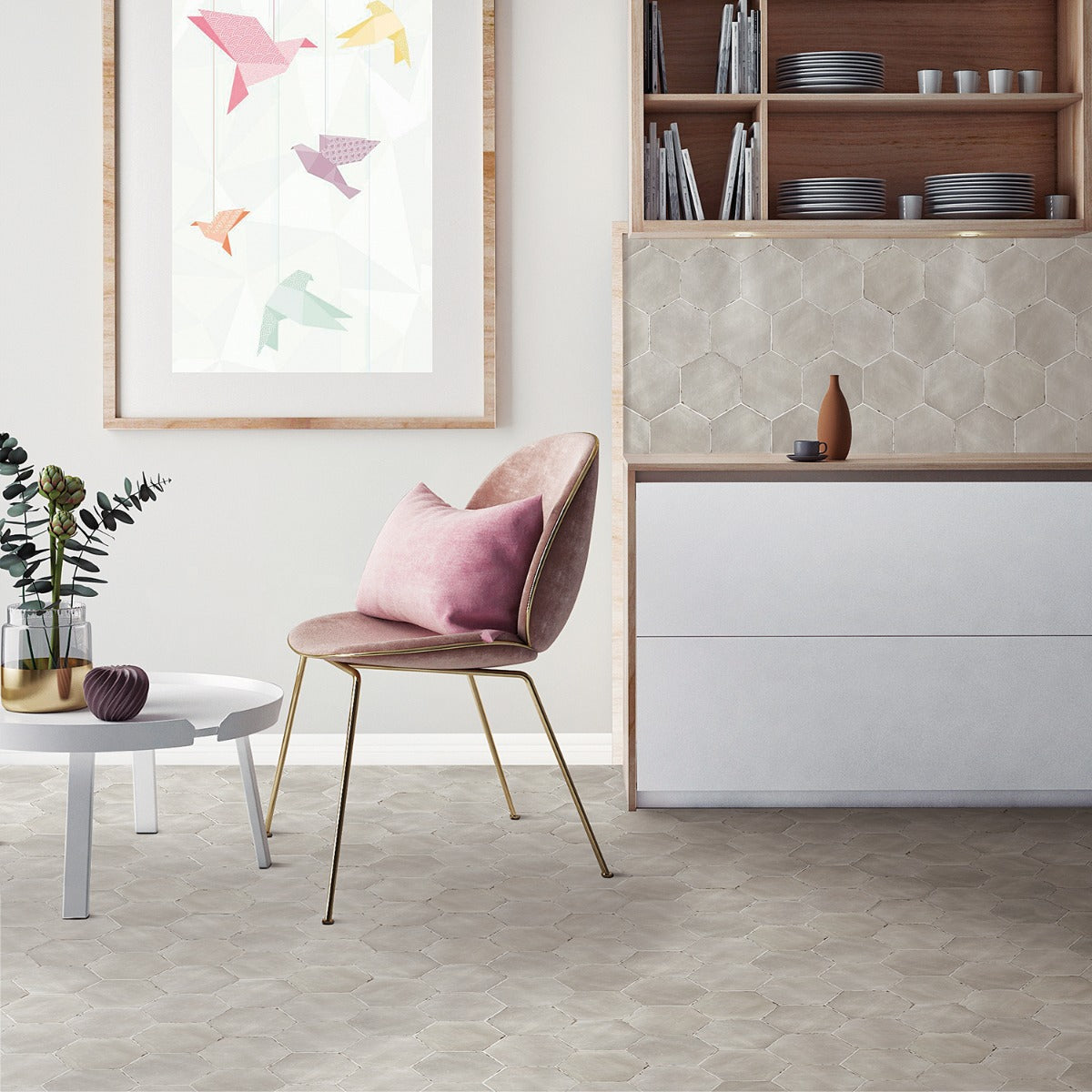 Transform your space with the timeless elegance of the Sasha Hex Taupe Porcelain Tile today.