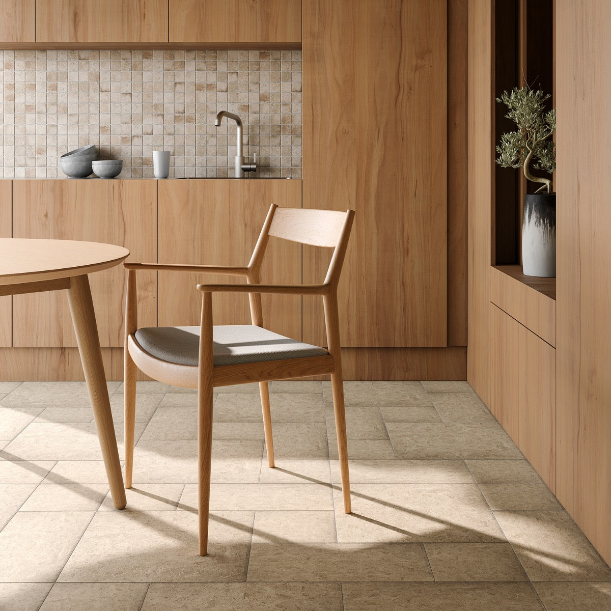 The Seville Delfi Beige Porcelain Tile transforms any room with its authentic travertine look and matte finish. Its natural shade variations and earthy tones create a warm, inviting atmosphere. Perfect for both modern and classic interiors, this tile can be styled with minimalist furniture or rustic decor. A versatile choice for luxurious living, it’s a designer’s dream for creating stunning, durable spaces.