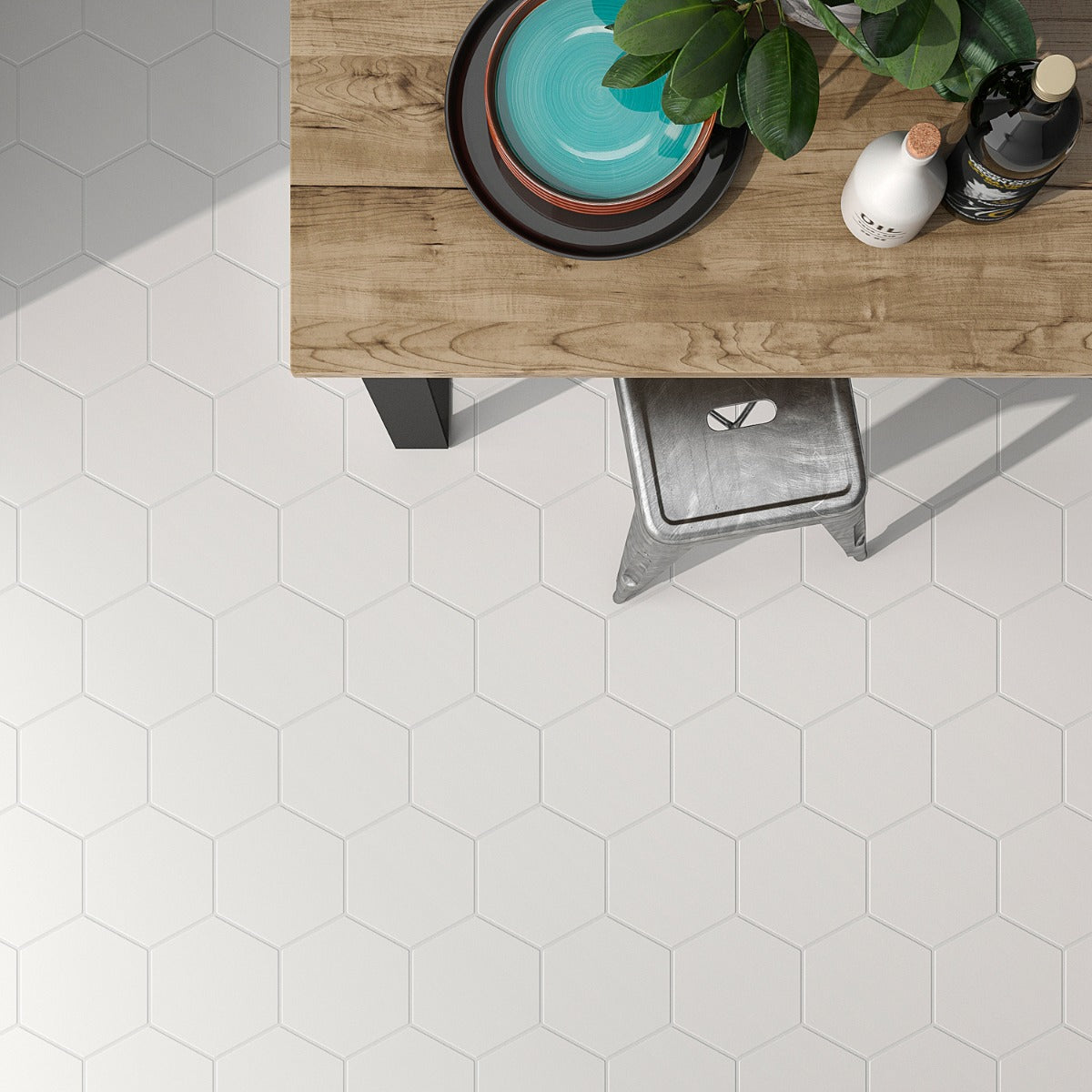 SymetroHex White 10" Matte Porcelain Tile - Lux Tile