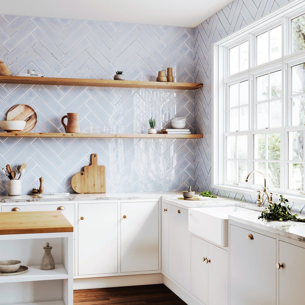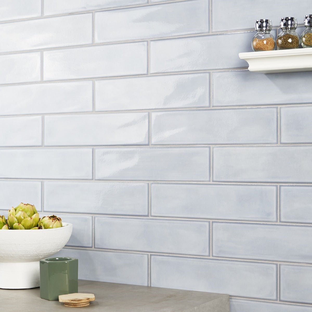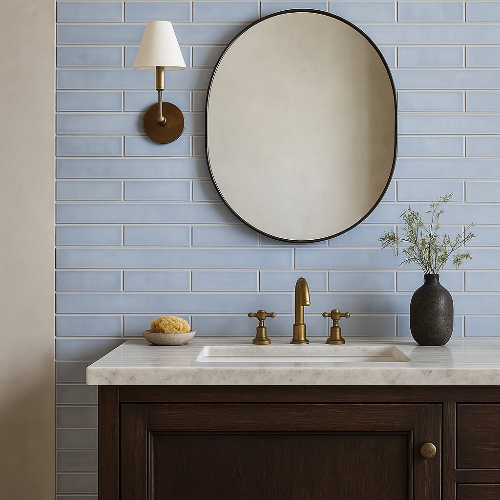 The ArtBlock Azure Light Blue Glossy Porcelain Tile by Stacy Garcia combines a delicate blue-gray shade with a glossy finish, offering a modern take on the classic subway tile. Perfect for walls and floors, this tile adds a touch of minimalist luxury to any space.