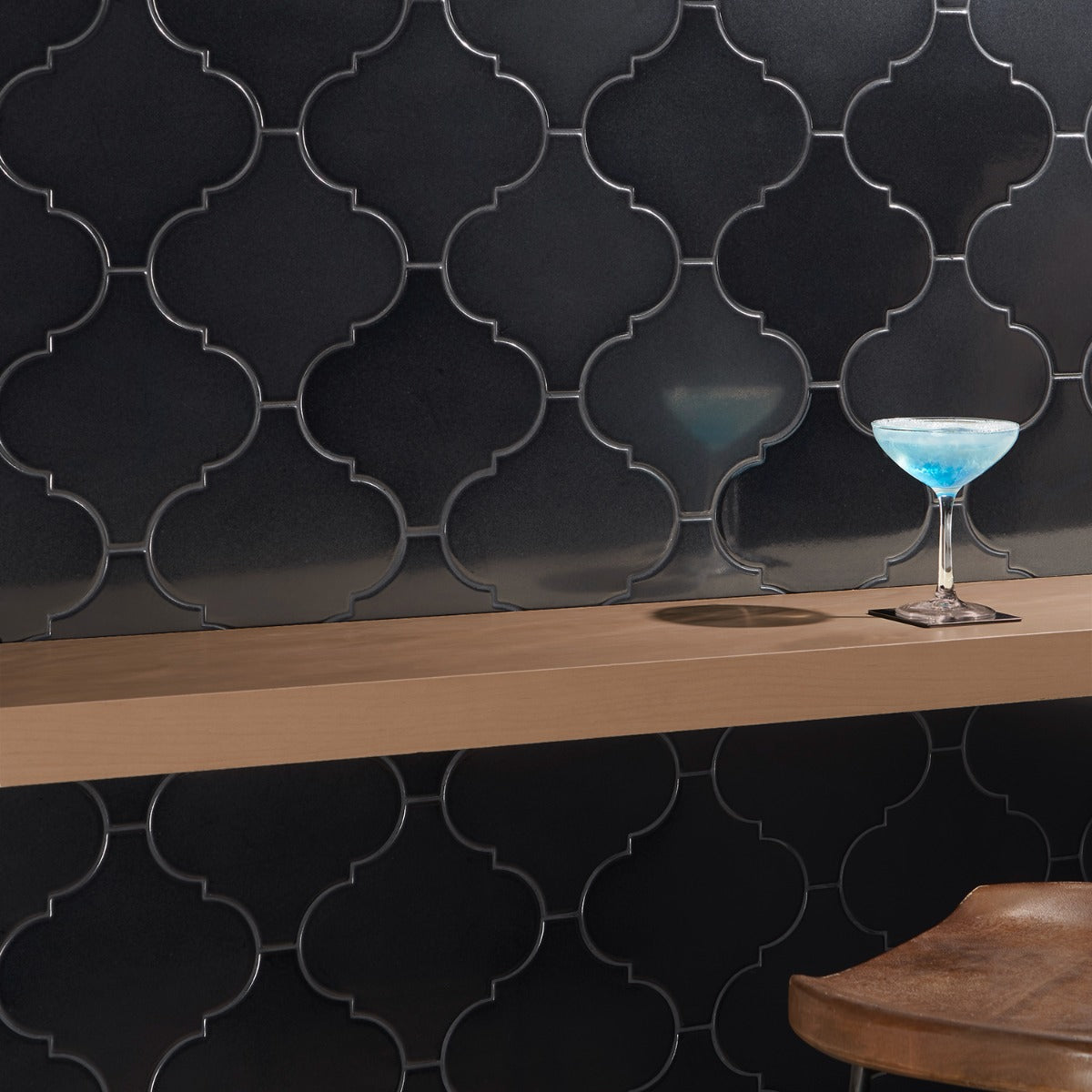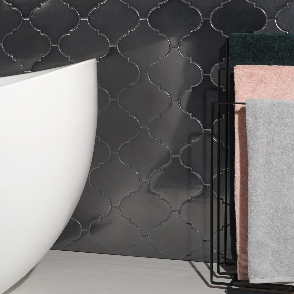 Transform your space with the elegant Zeal Gunmetal Gray Arabesque Tile today!