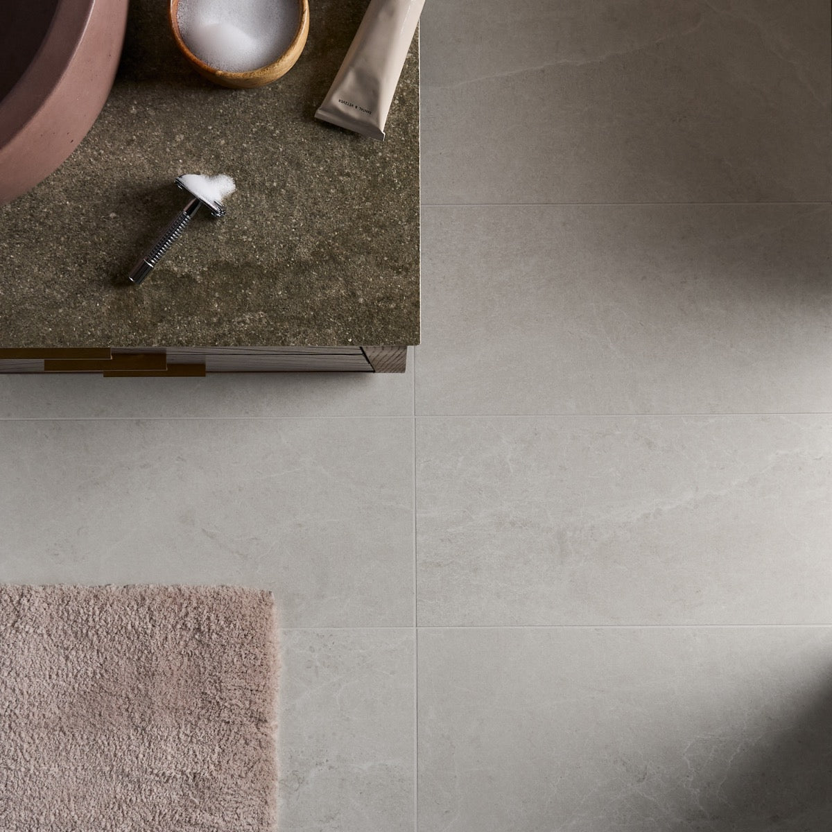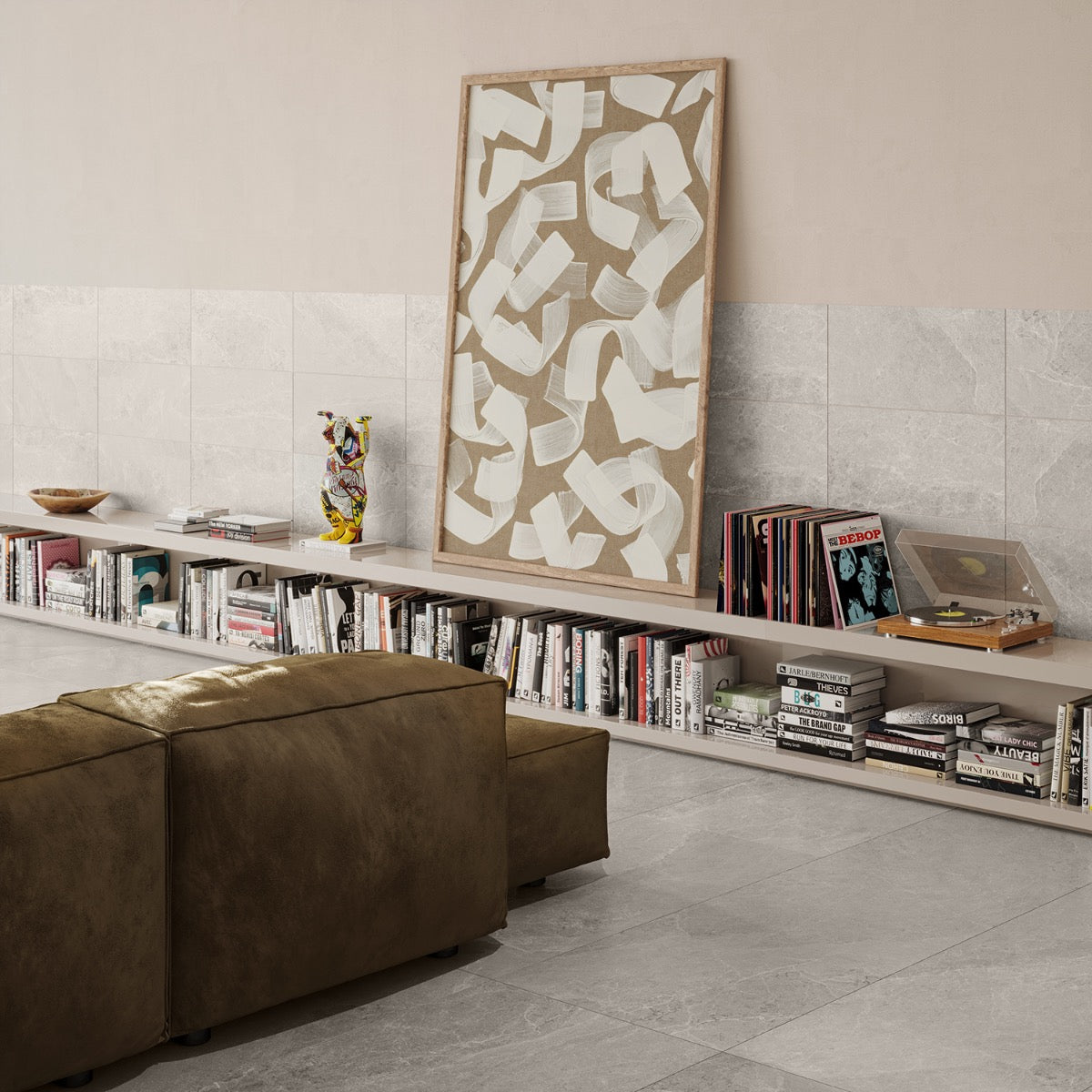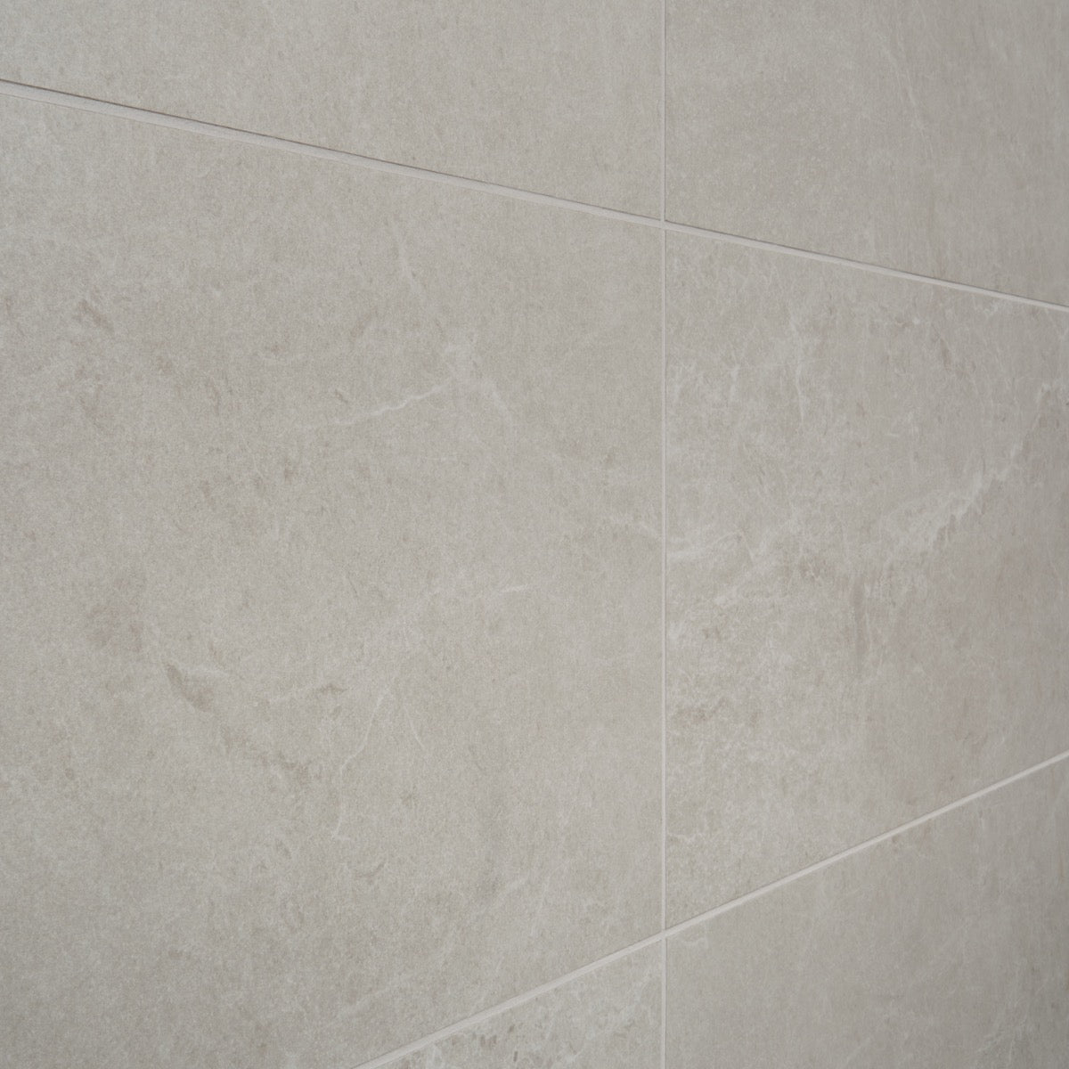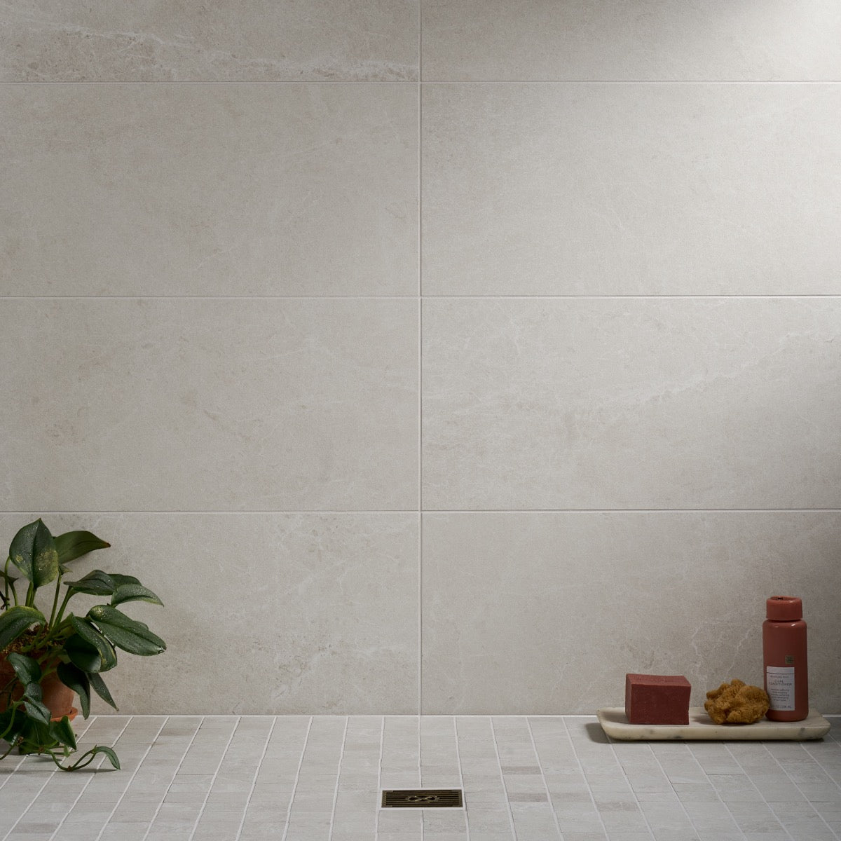 Transform your space with the ZenTech Chalk White Tile, combining natural stone aesthetics with durable porcelain performance.