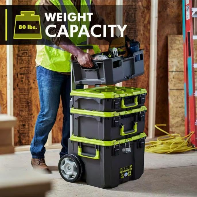 The RYOBI LINK 22.2 in. Modular Storage System offers versatile and durable tool storage with its Rolling and Medium Tool Boxes. Featuring impact-resistant materials, a 200 lb. load capacity, and all-terrain wheels, this system is perfect for organizing, accessing, and transporting tools efficiently. It’s part of the RYOBI LINK line, ensuring seamless connectivity with other modular storage options.
