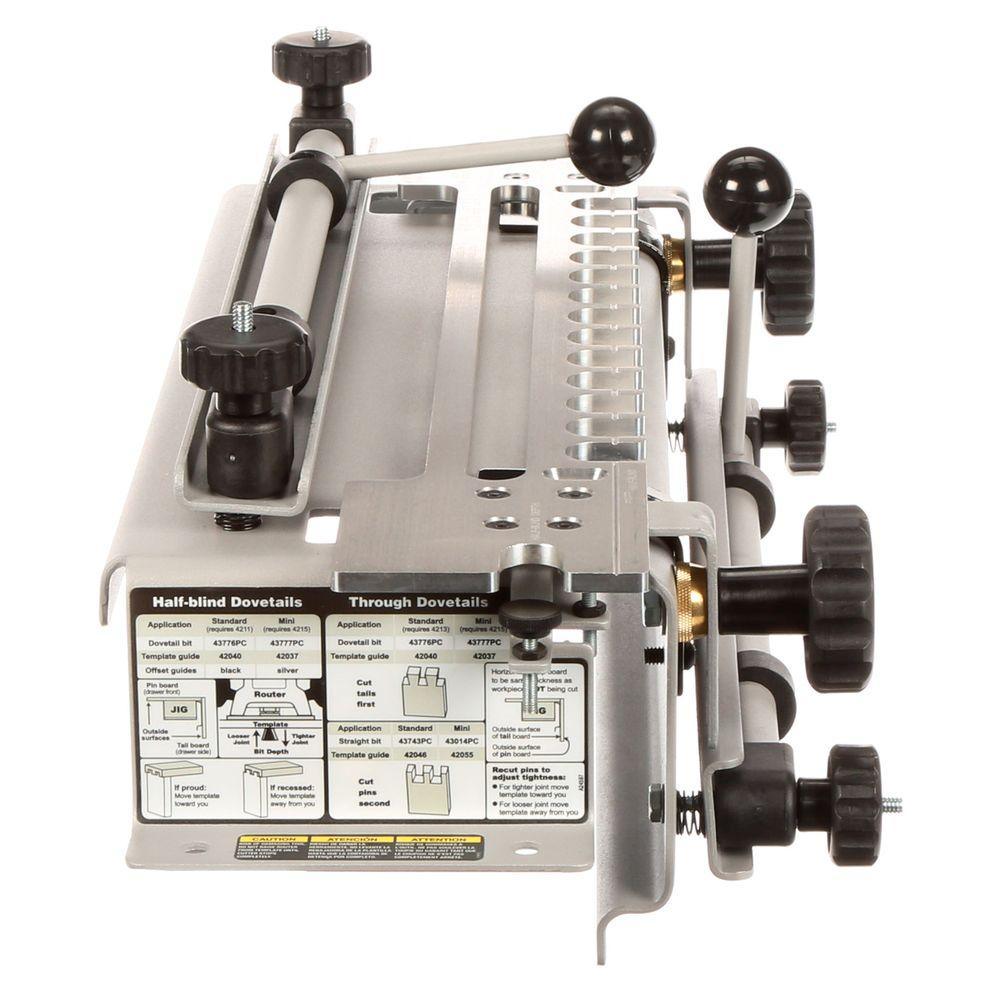 • Includes template 4211 for half-blind, rabbeted half-blind and sliding dovetails