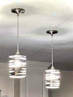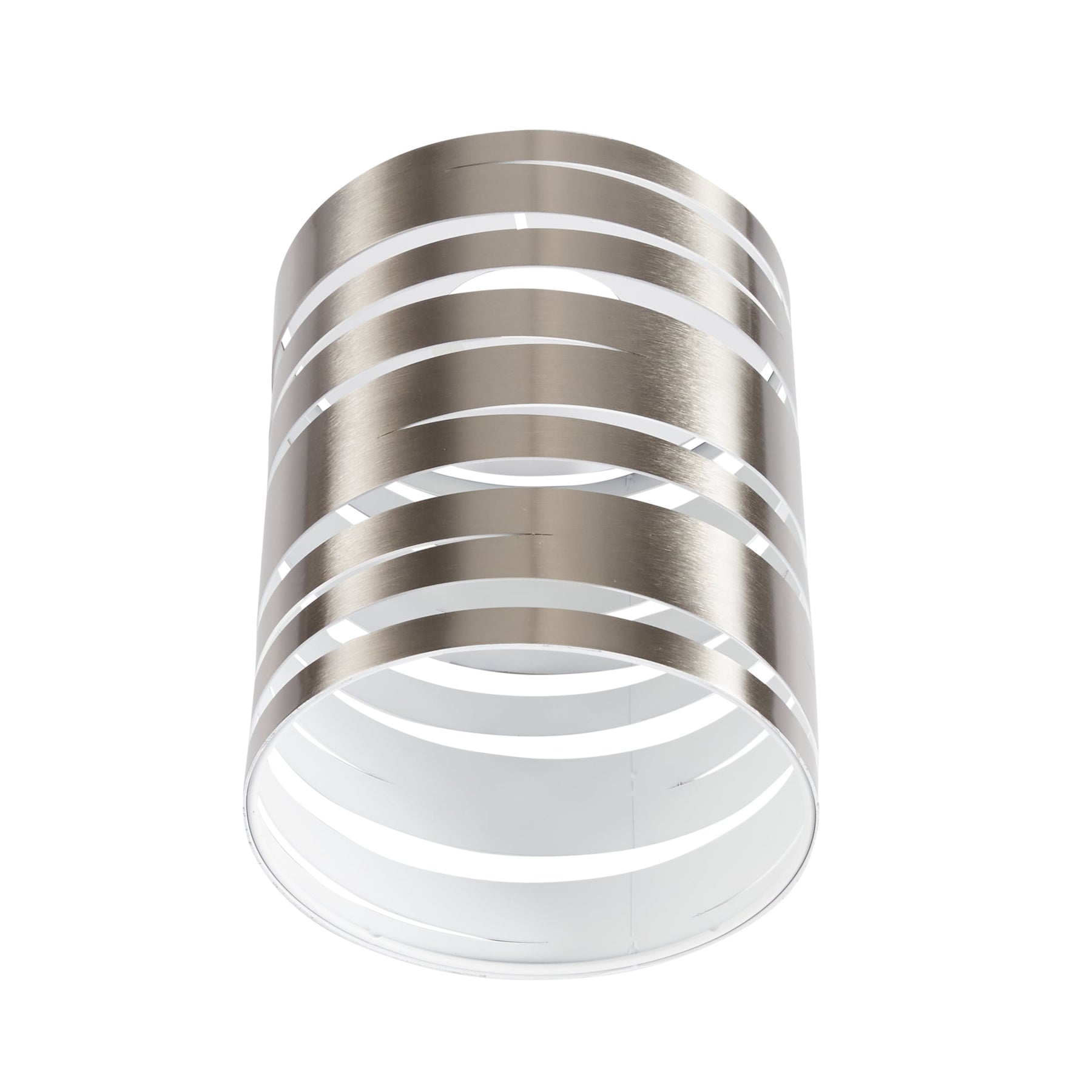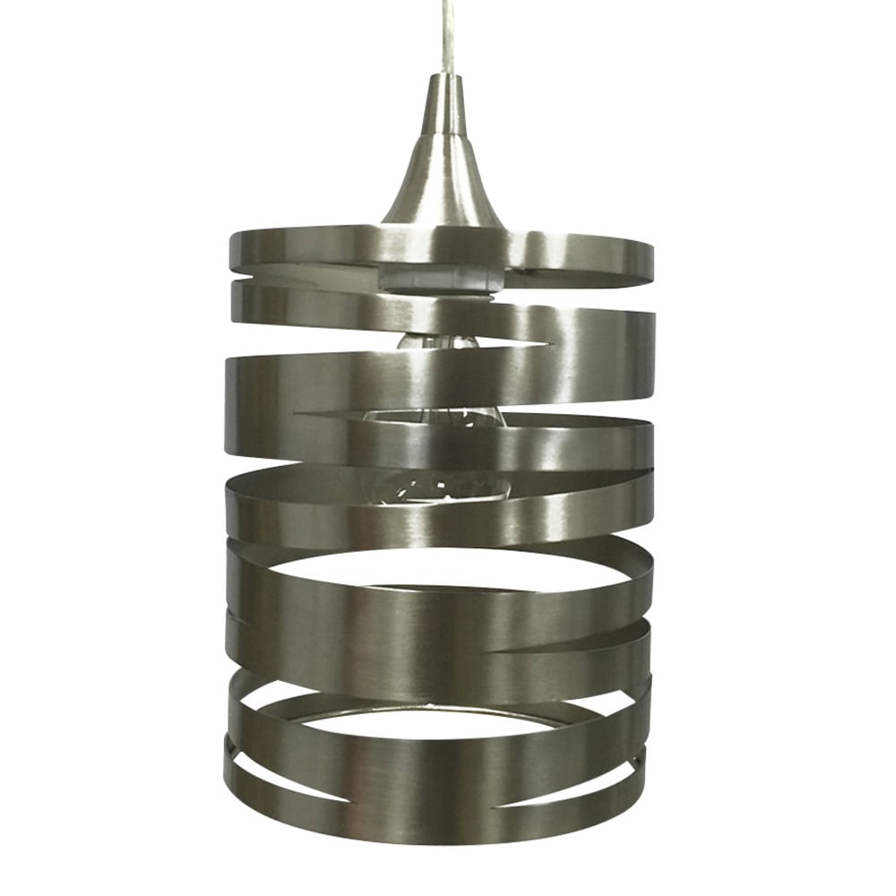 • Modern Spiral Design: Brushed nickel cylinder with dynamic cutouts adds sleek, contemporary style