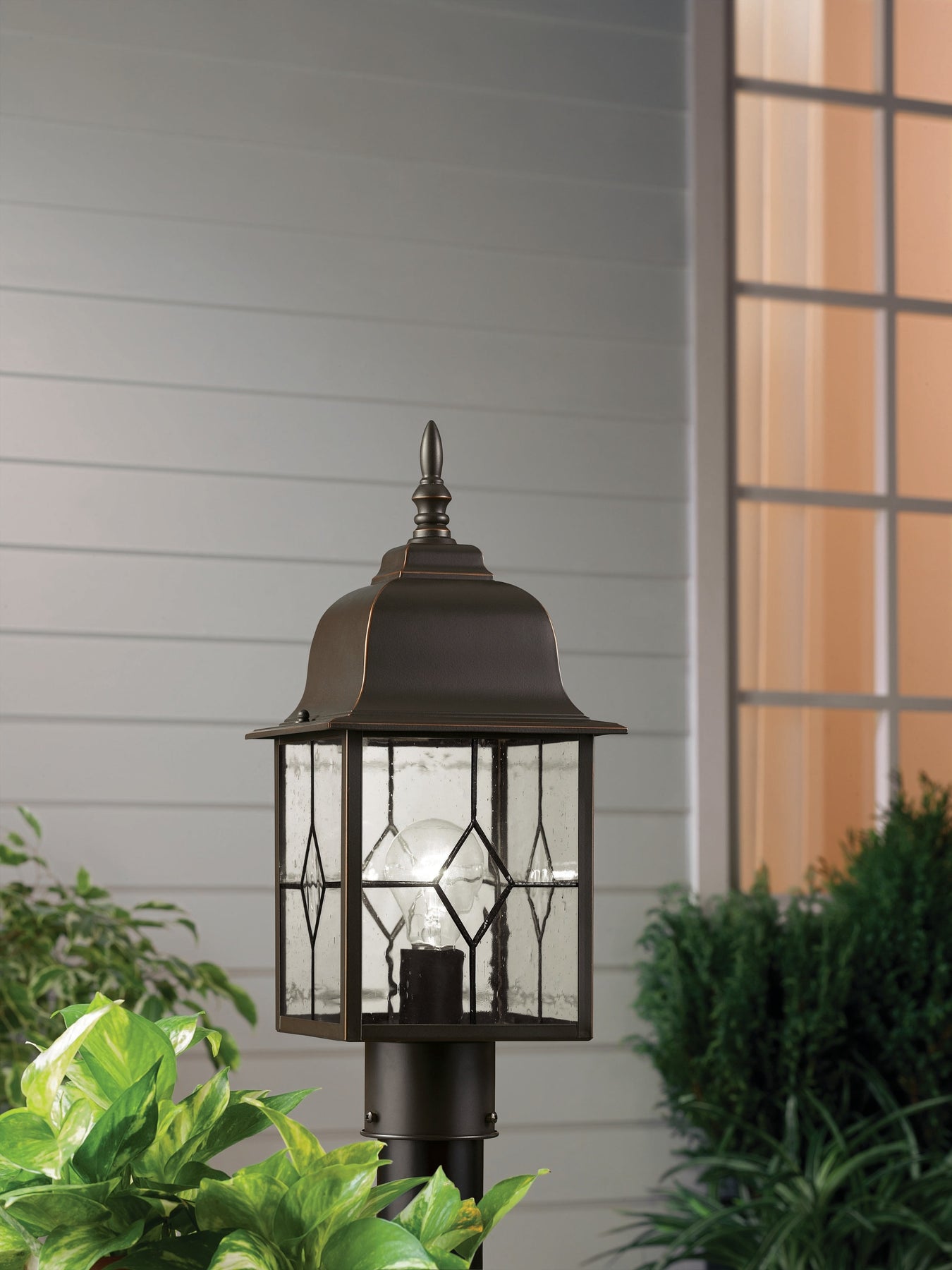• Traditional Design: Lantern silhouette with diamond-pattern glass adds timeless style to exteriors