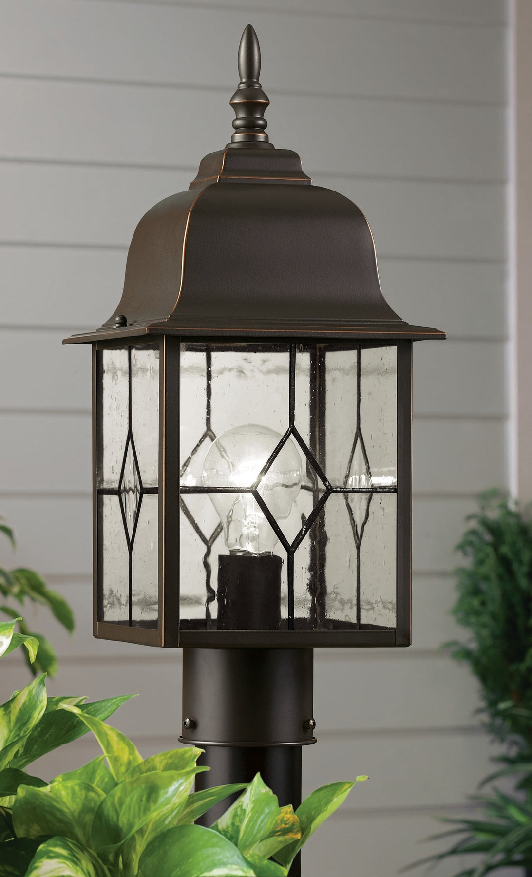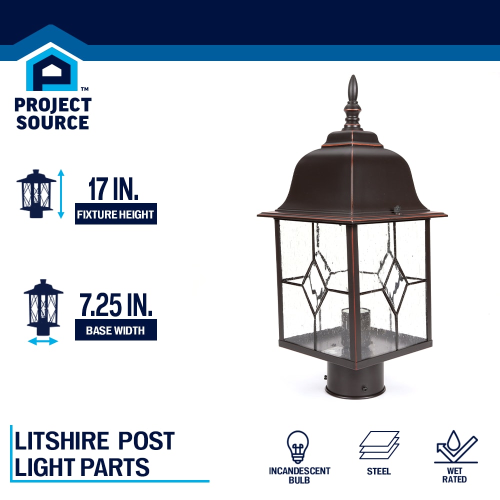 Bring classic curb appeal to your entry or walkway with the Litshire post lantern. The oil-rubbed bronze finish pairs with clear seeded and water glass to cast bright, traditional illumination. Built from sturdy steel and wet-rated for lasting outdoor use.