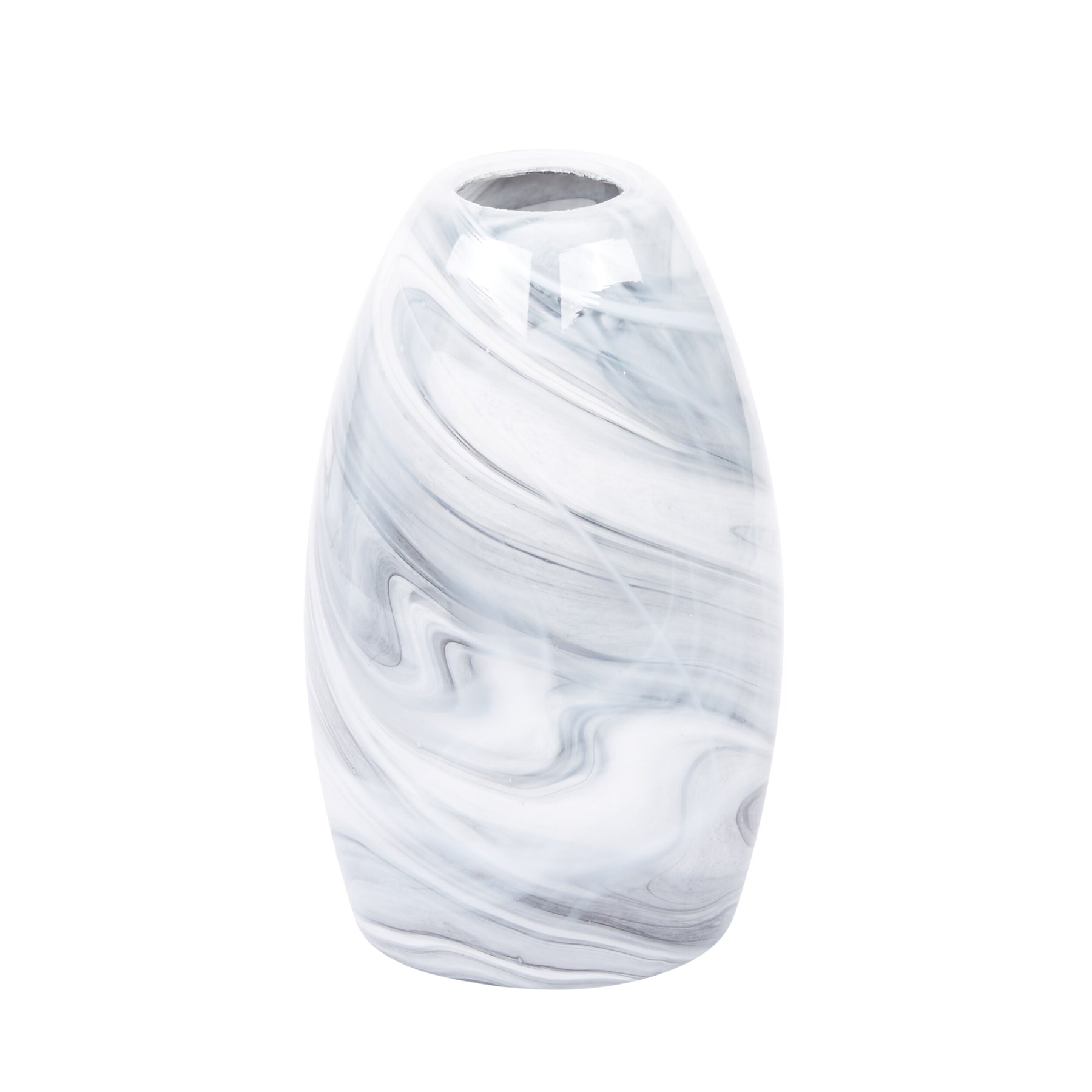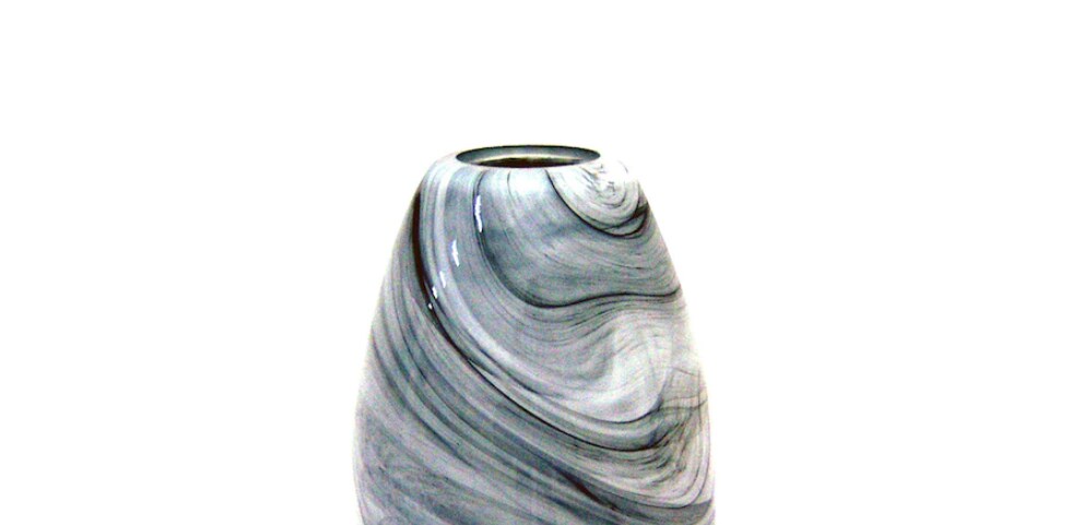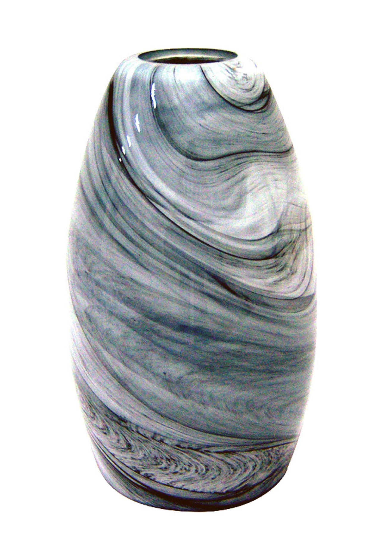 • Unique Art Glass: Hand-applied swirls in gray, black, and white—each shade is one-of-a-kind