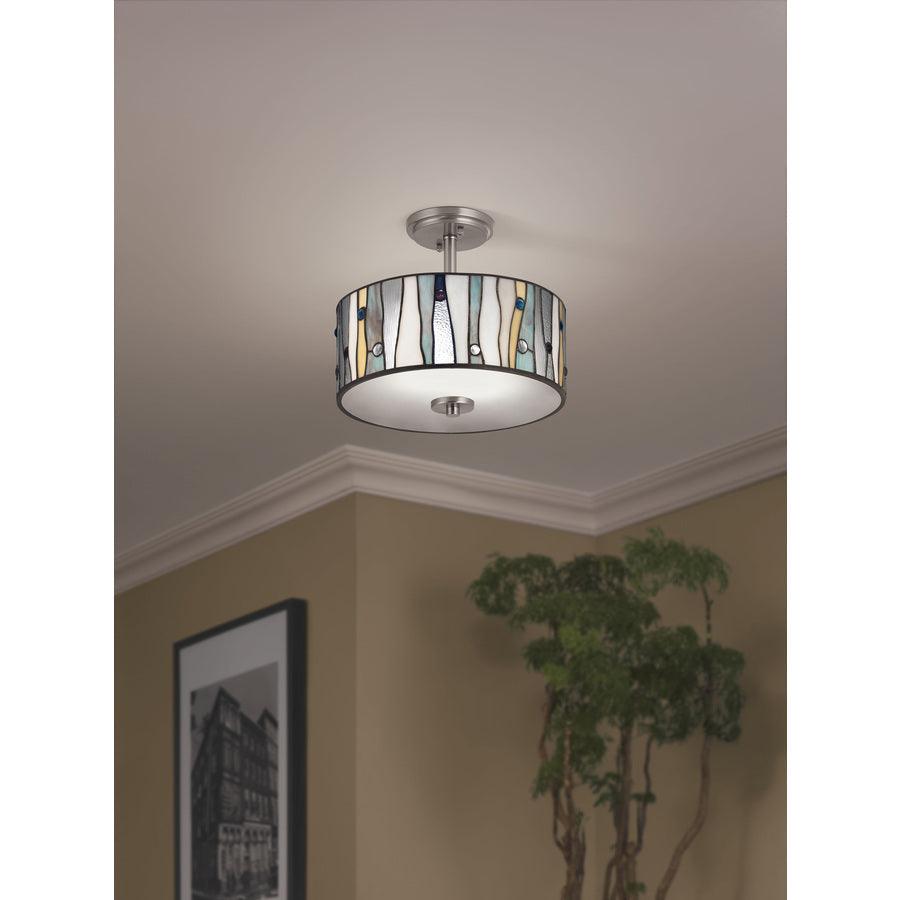 Portfolio 13-in Brushed Nickel Tiffany Semi-Flush Mount Ceiling Light, 2-Light
