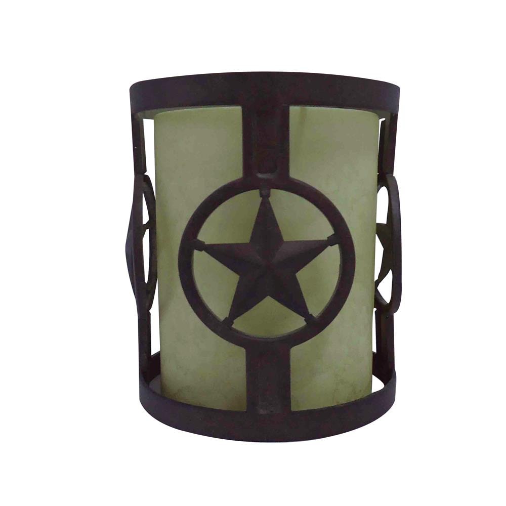 - Rustic Design: Bronze metal cylinder with Texas-star accent adds Southwestern charm